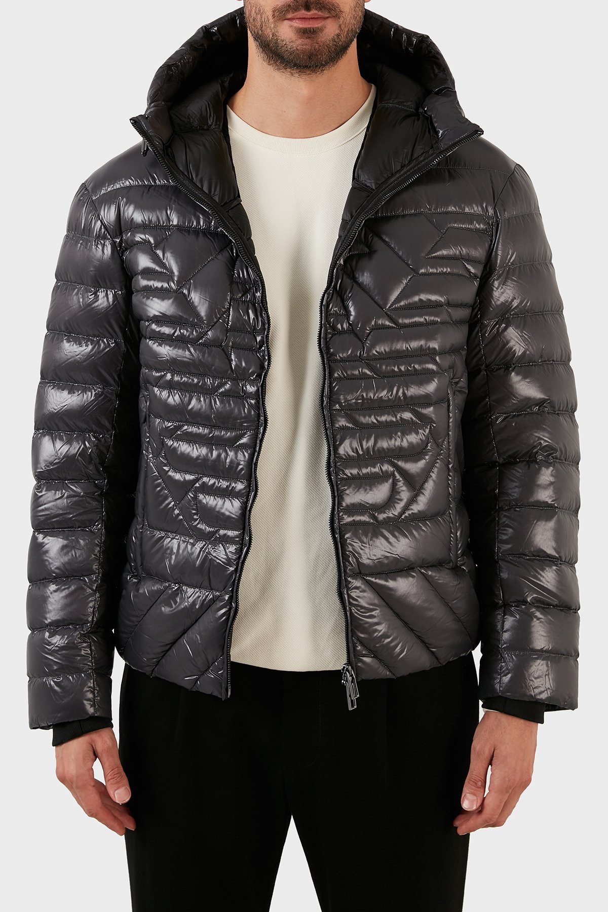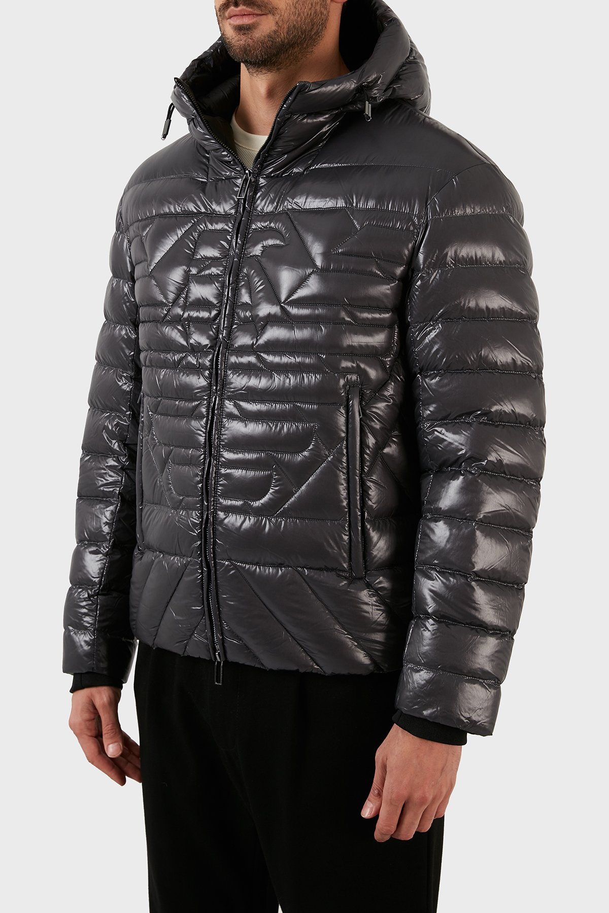 Su Geçirmez Slim Fit Kuş Tüyü Dolgulu Kapüşonlu Şişme Erkek Mont 6L1BN7 1NPDZ 0651 GRİ