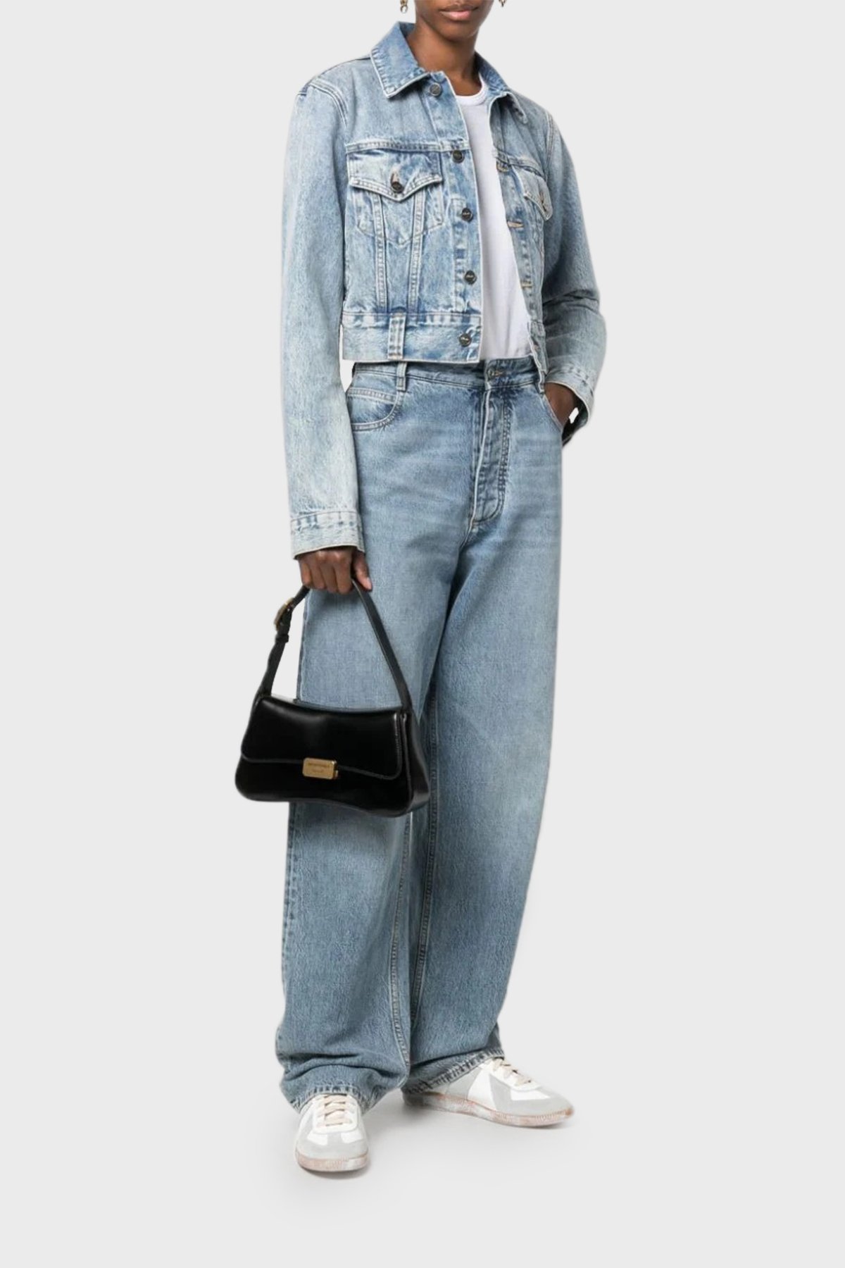 Suni Deri Ayarlanabilir Omuz Askılı Logolu Bayan Çanta Y3E226 YWE2D 80001 SİYAH