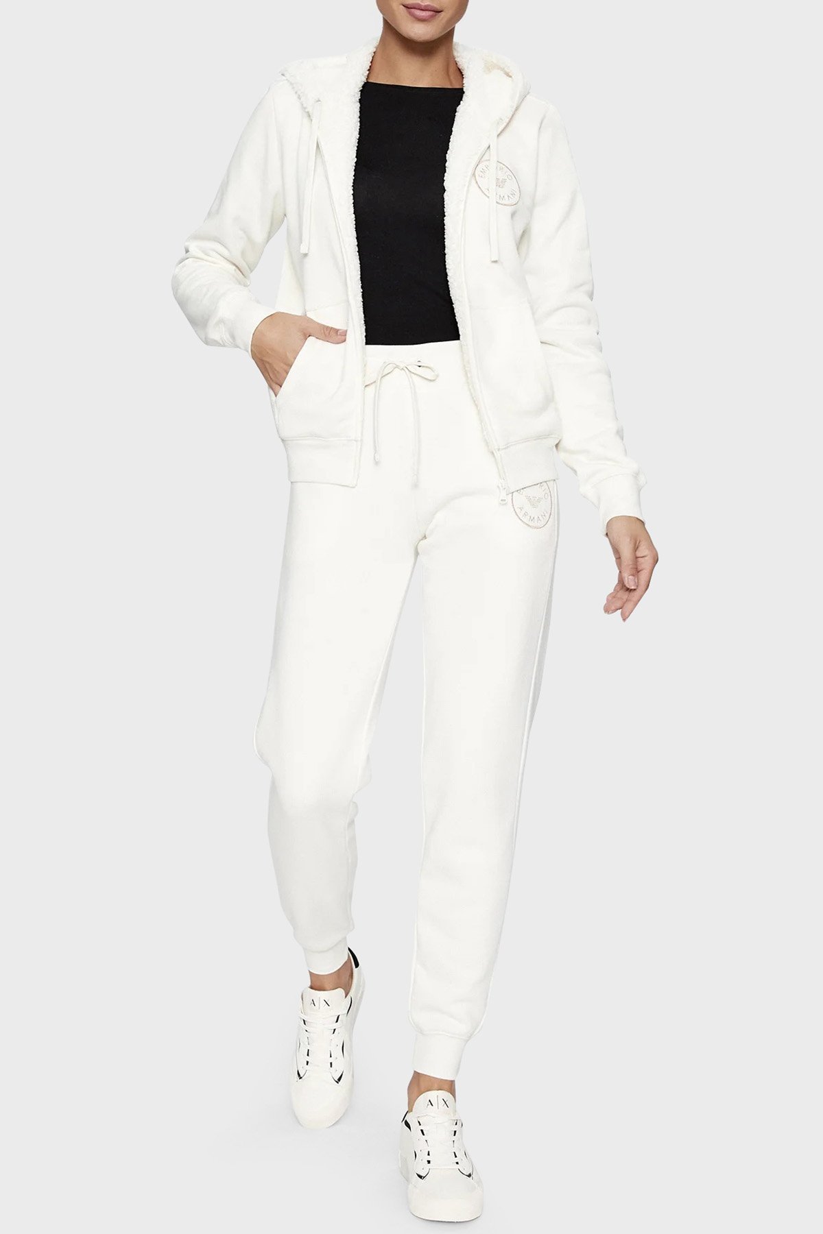 Emporio Armani Streç Pamuklu Boyfirend Fit Kapüşonlu Bayan Sweat 6D2M7F 2J49Z 0101 BEYAZ - Emporio Armani Emporio Armani Streç Pamuklu Boyfirend Fit Kapüşonlu Bayan Sweat 6D2M7F 2J49Z 0101 BEYAZ - Emporio Armani (1)