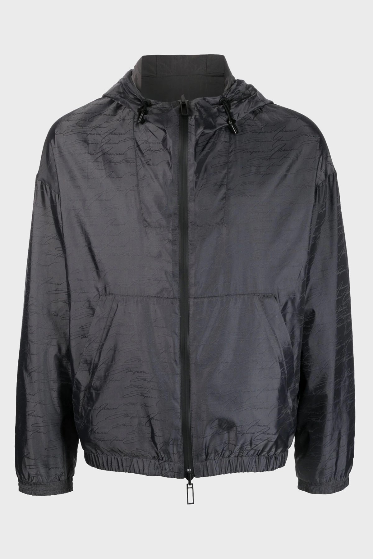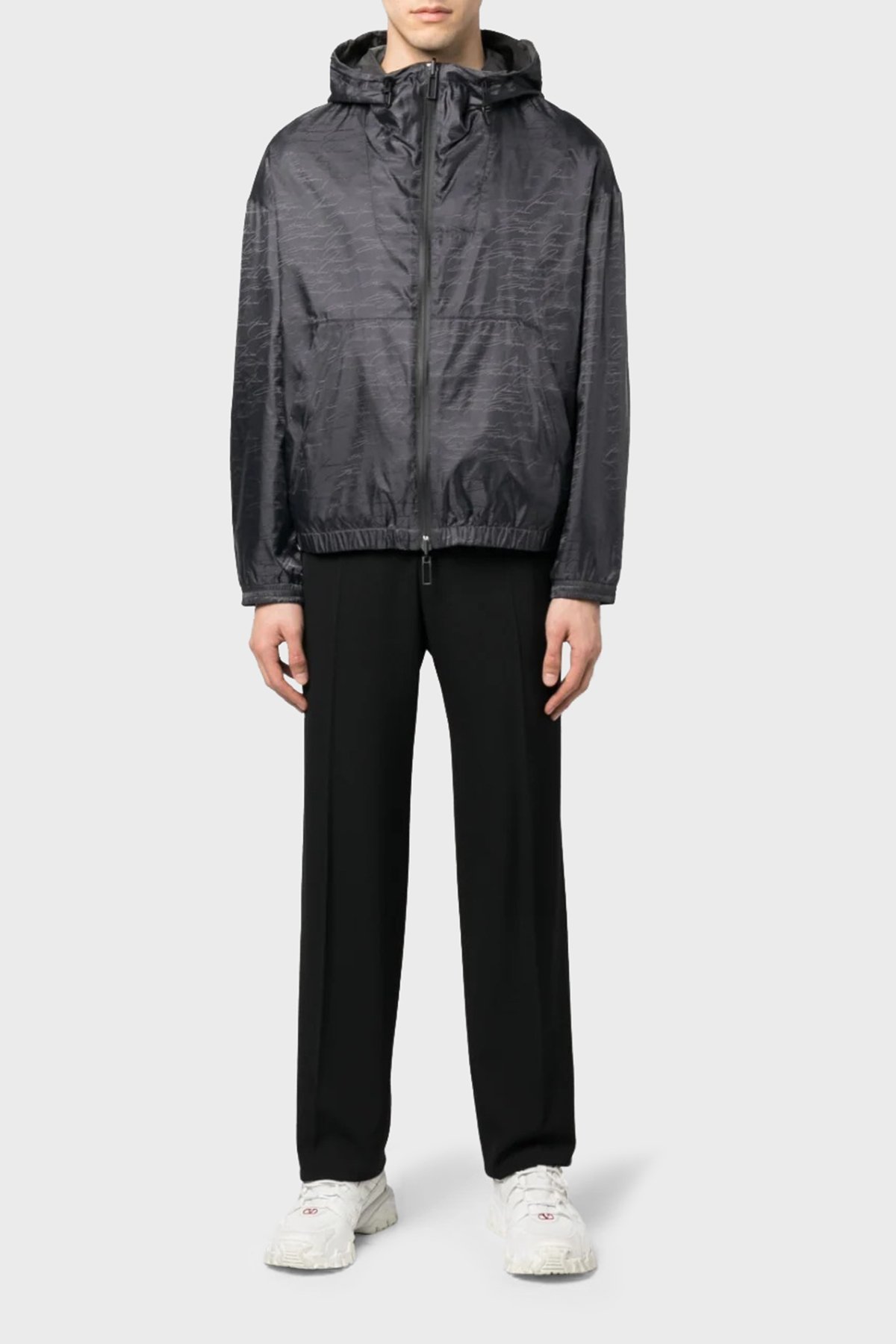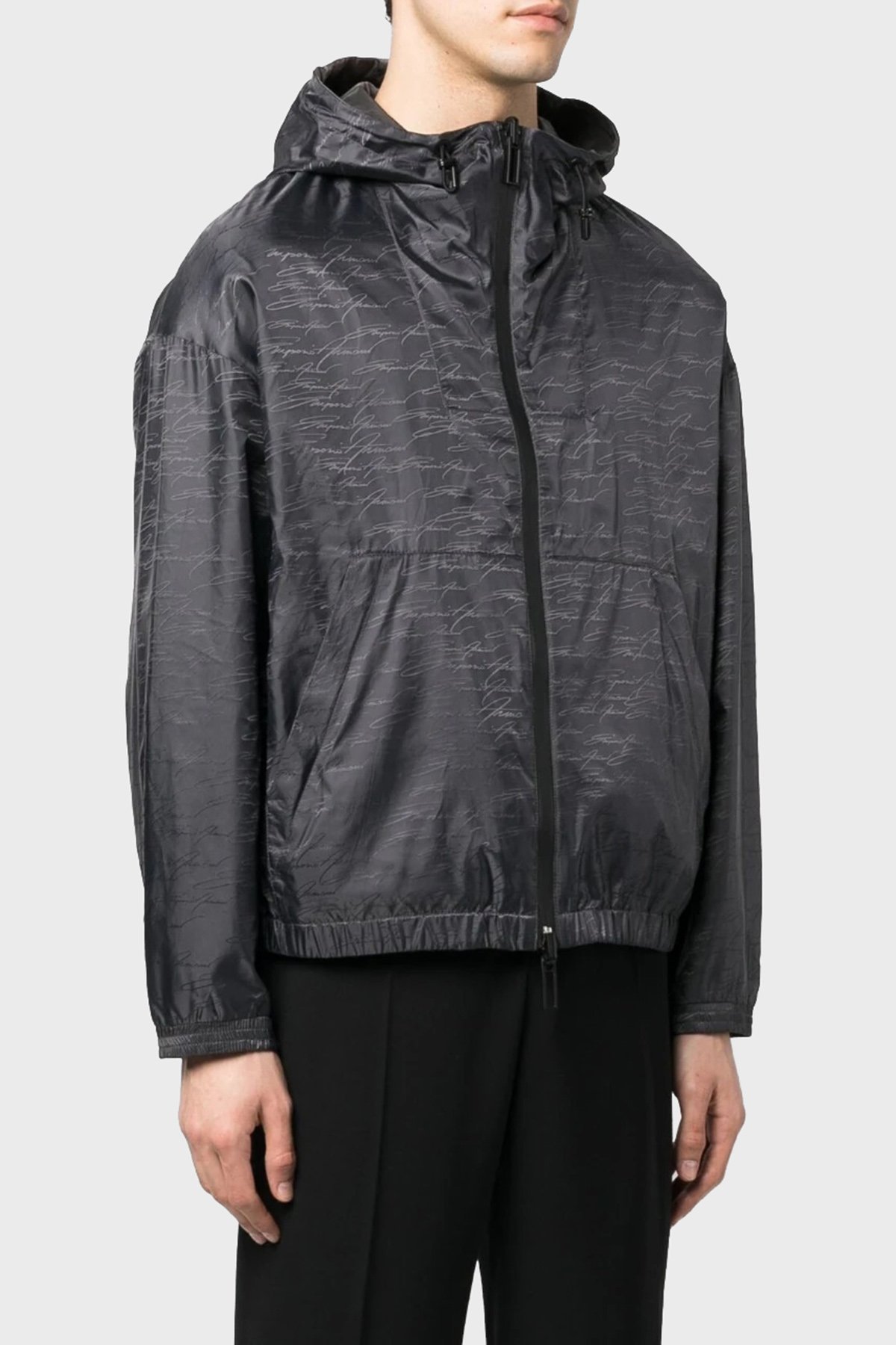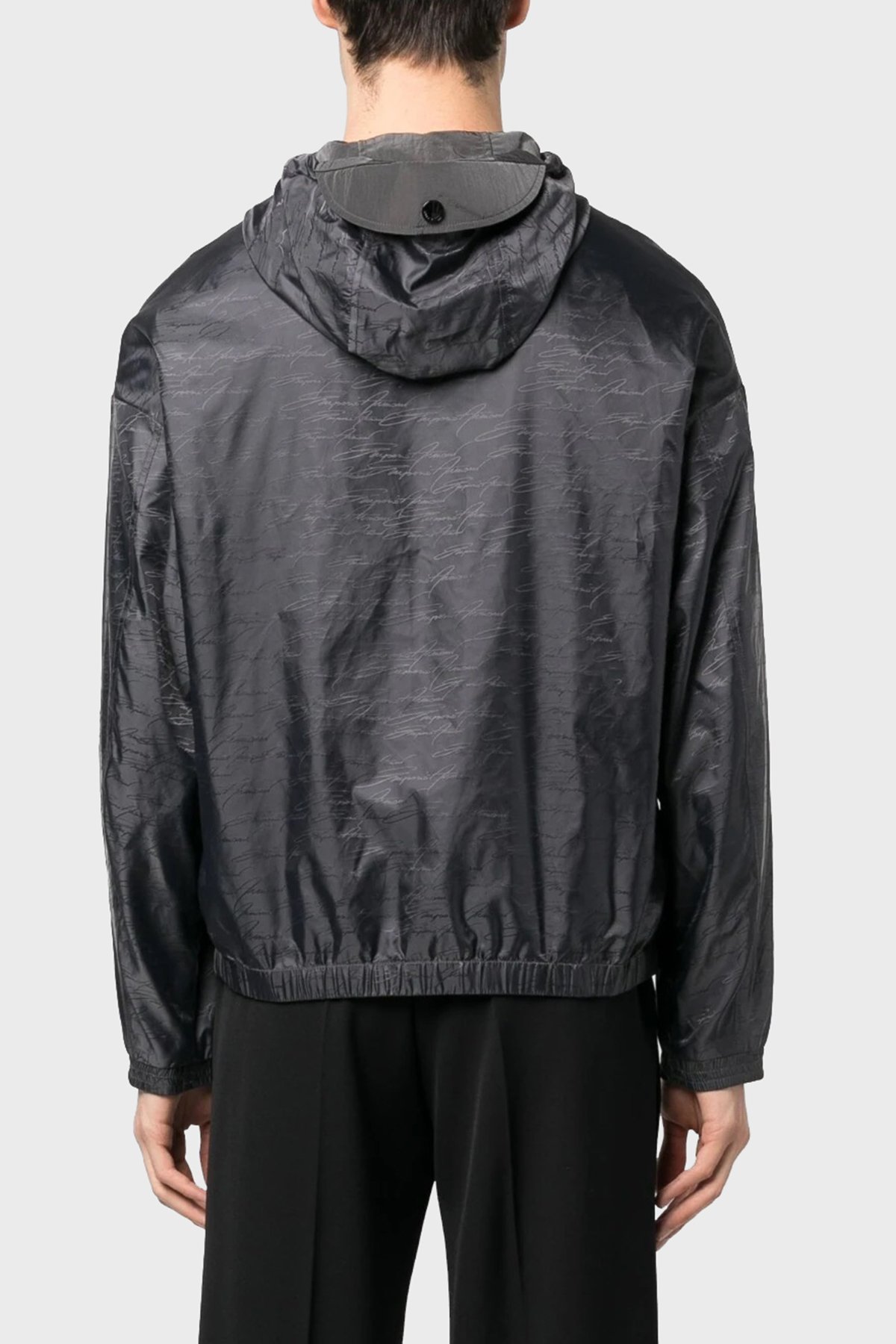 Tamamı Logo Baskılı Kapüşonlu Regular Fit Erkek Mont 3R1BQ9 1NVSZ F073 SİYAH
