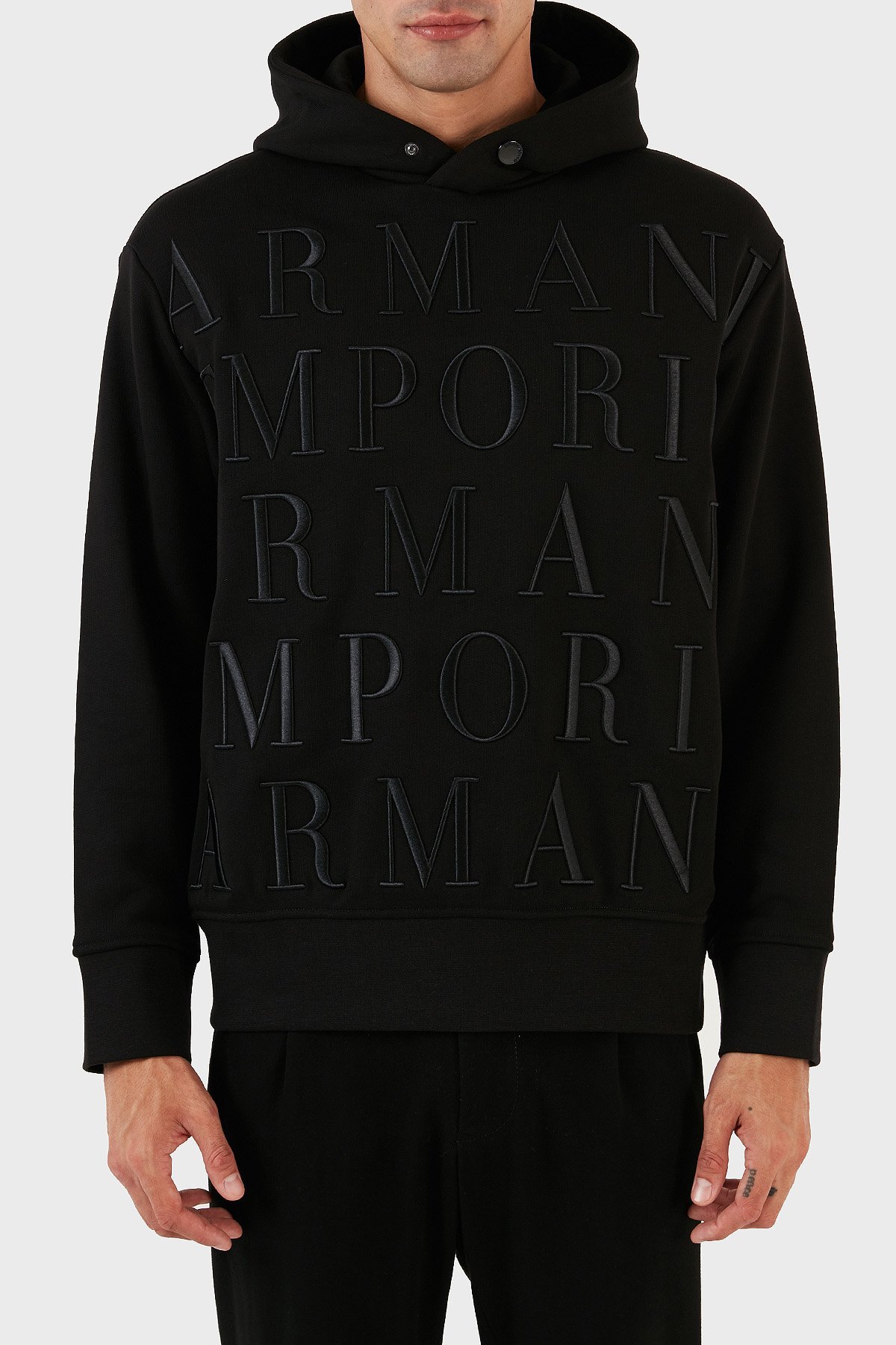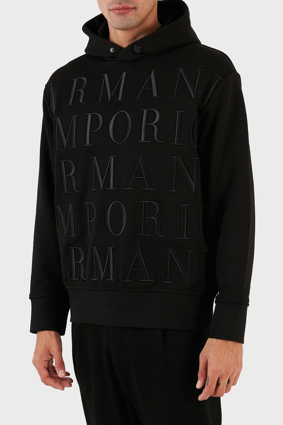 Tamamı Logo Kabartmalı % 100 Pamuk Kapüşonlu Regular Fit Erkek Sweat 6R1MCR 1JWPZ 0999 SİYAH