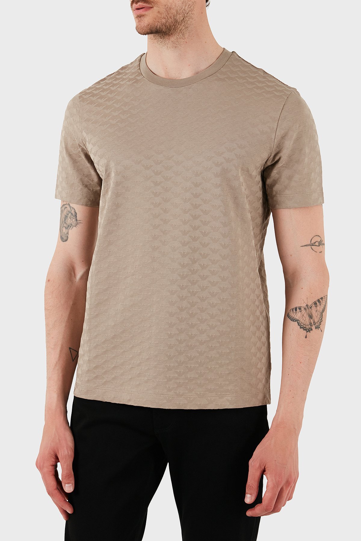 Tamamı Logolu % 100 Pamuk Slim Fit Bisiklet Yaka Erkek T Shirt 8N1TL7 1JHWZ U6167 BEJ