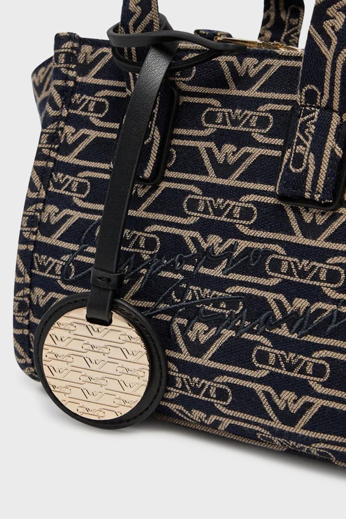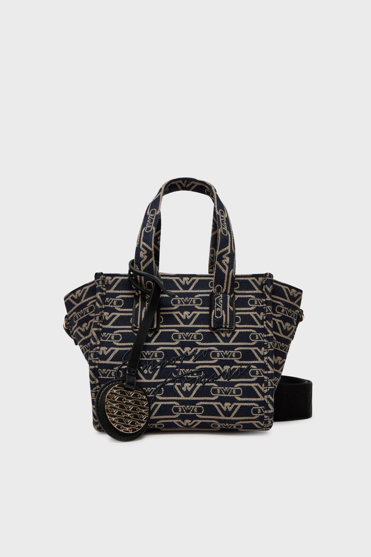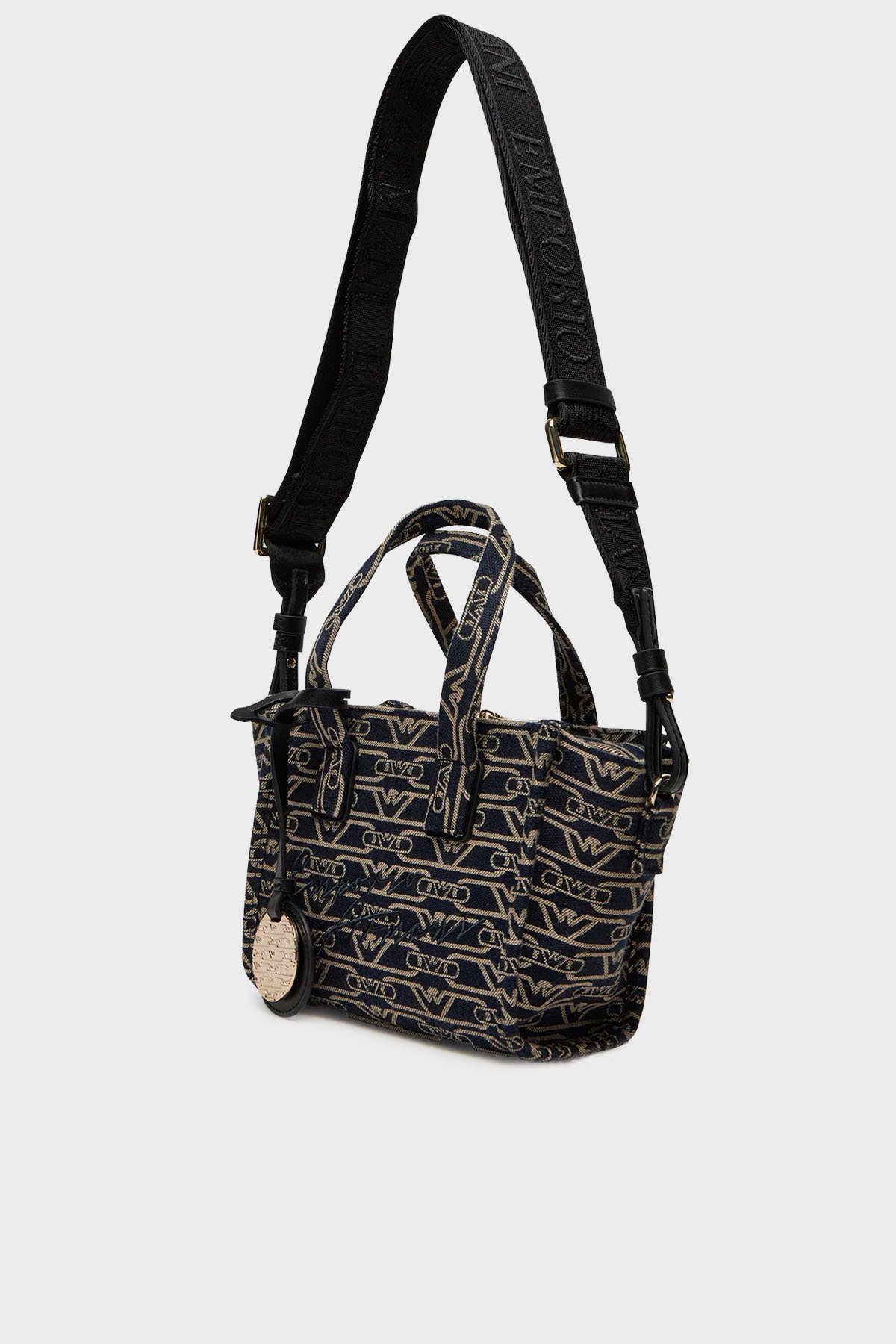 Tamamı Logolu Çıkarılabilir Askılı Bayan Çanta EW000371 AF12993 FB237 EKRU-LACİVERT