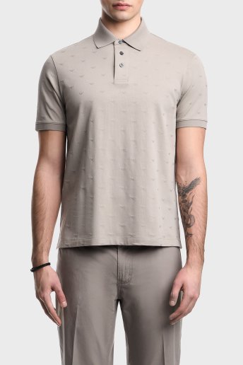 Tamamı Logolu Pamuklu Slim Fit Düğmeli Erkek Polo EM004912 AF10762 F6219 GRİ