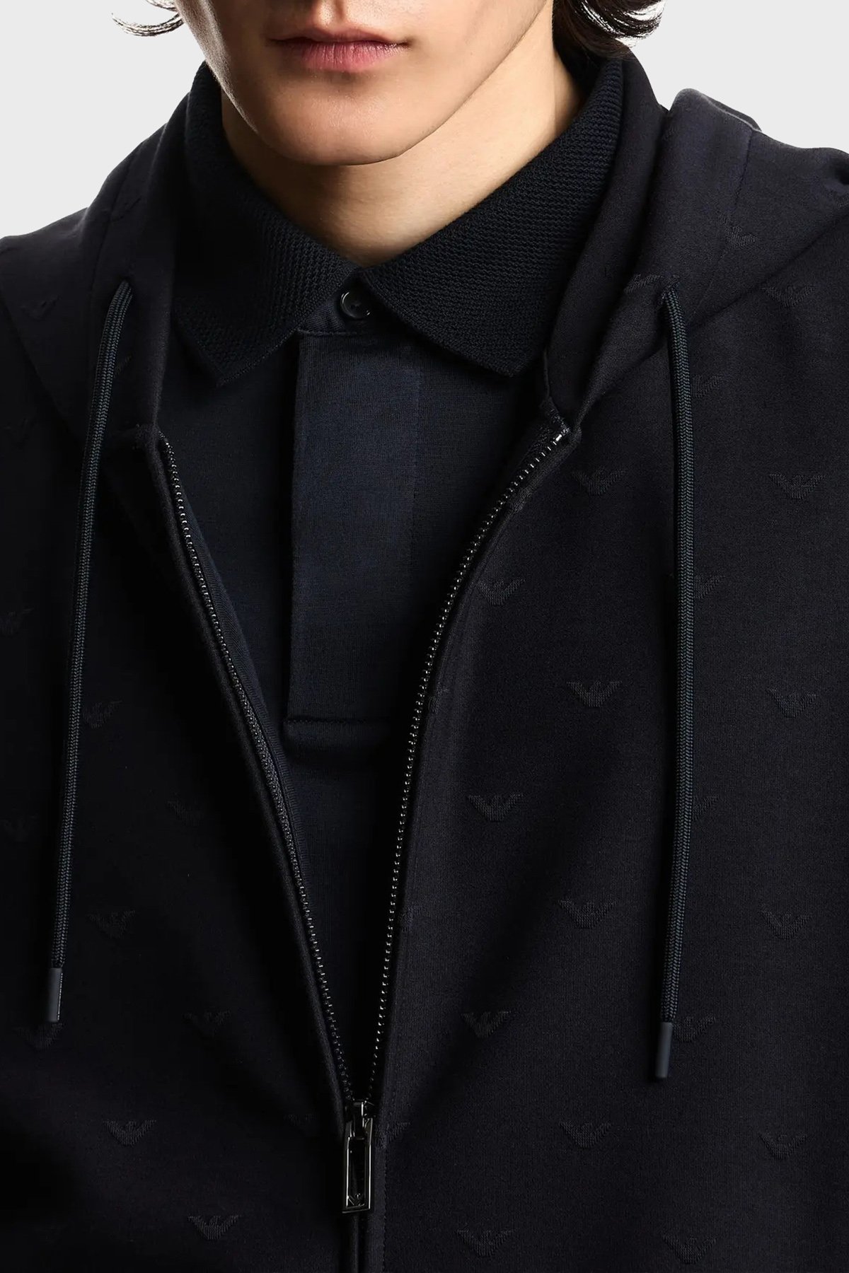 Tamamı Logolu Regular Fit Kapüşonlu Fermuarlı Erkek Sweat EM004867 AF13700 FB469 LACİVERT