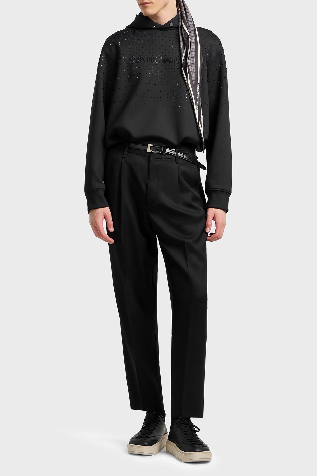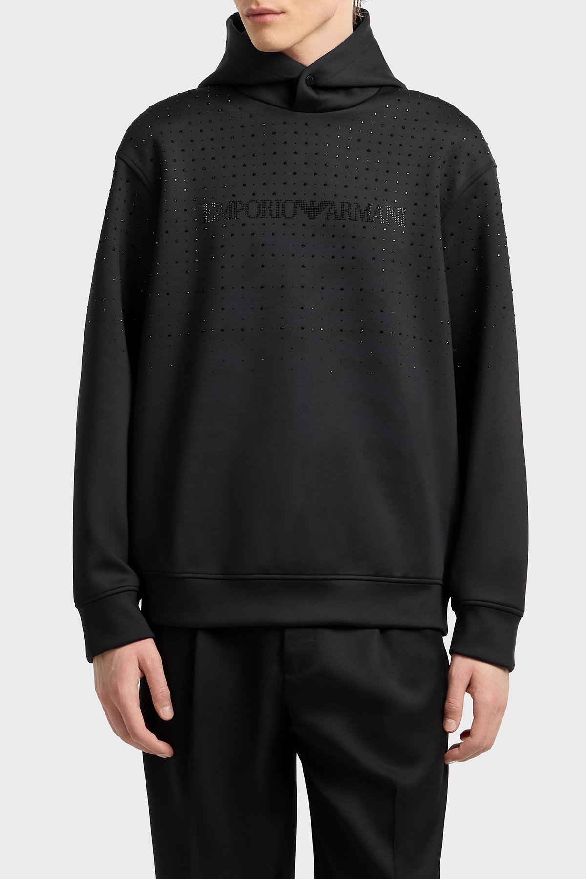 Taşlı Logolu Streç Regular Fit Kapüşonlu Erkek Sweat EM003673 AF19556 UC001 SİYAH