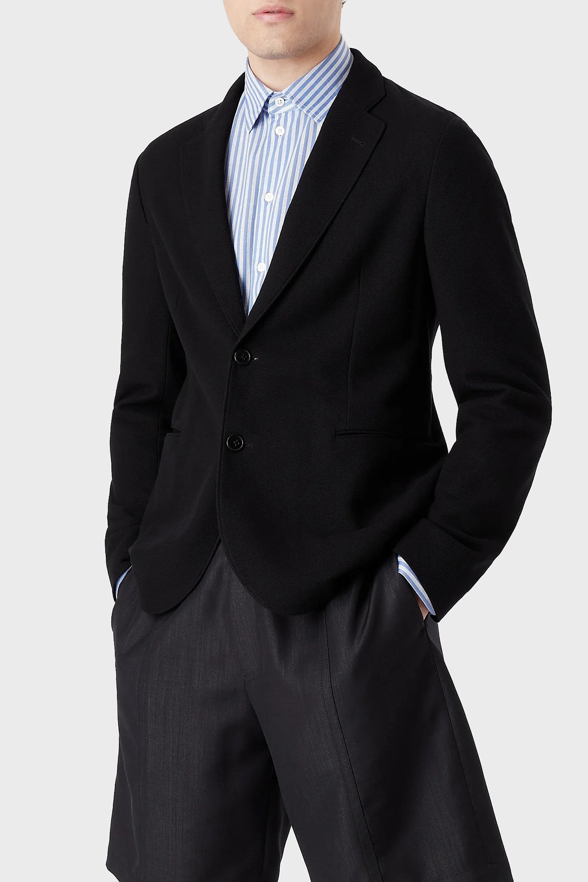 Yün Karışımlı Çift Cepli Mono Yaka Regular Fit Erkek Ceket H31G37 C1055 999 SİYAH