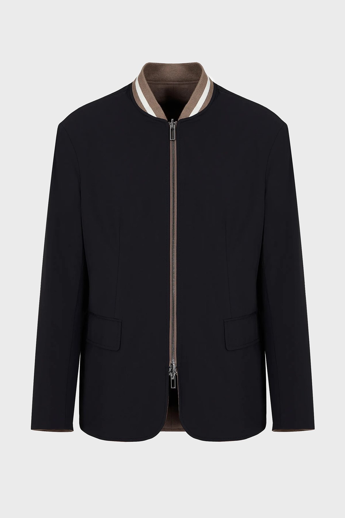 Yün Karışımlı Fermuarlı Çift Taraflı Blazer Erkek Ceket 6R1G74 1NFVZ 0440 SÜTLÜ KAHVE