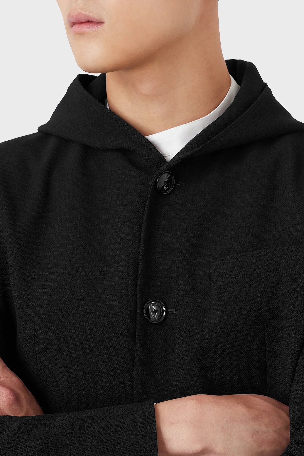 Yün Karışımlı Kapüşonlu Slim Fit Erkek Ceket 6K1GN6 1NQCZ 0999 SİYAH