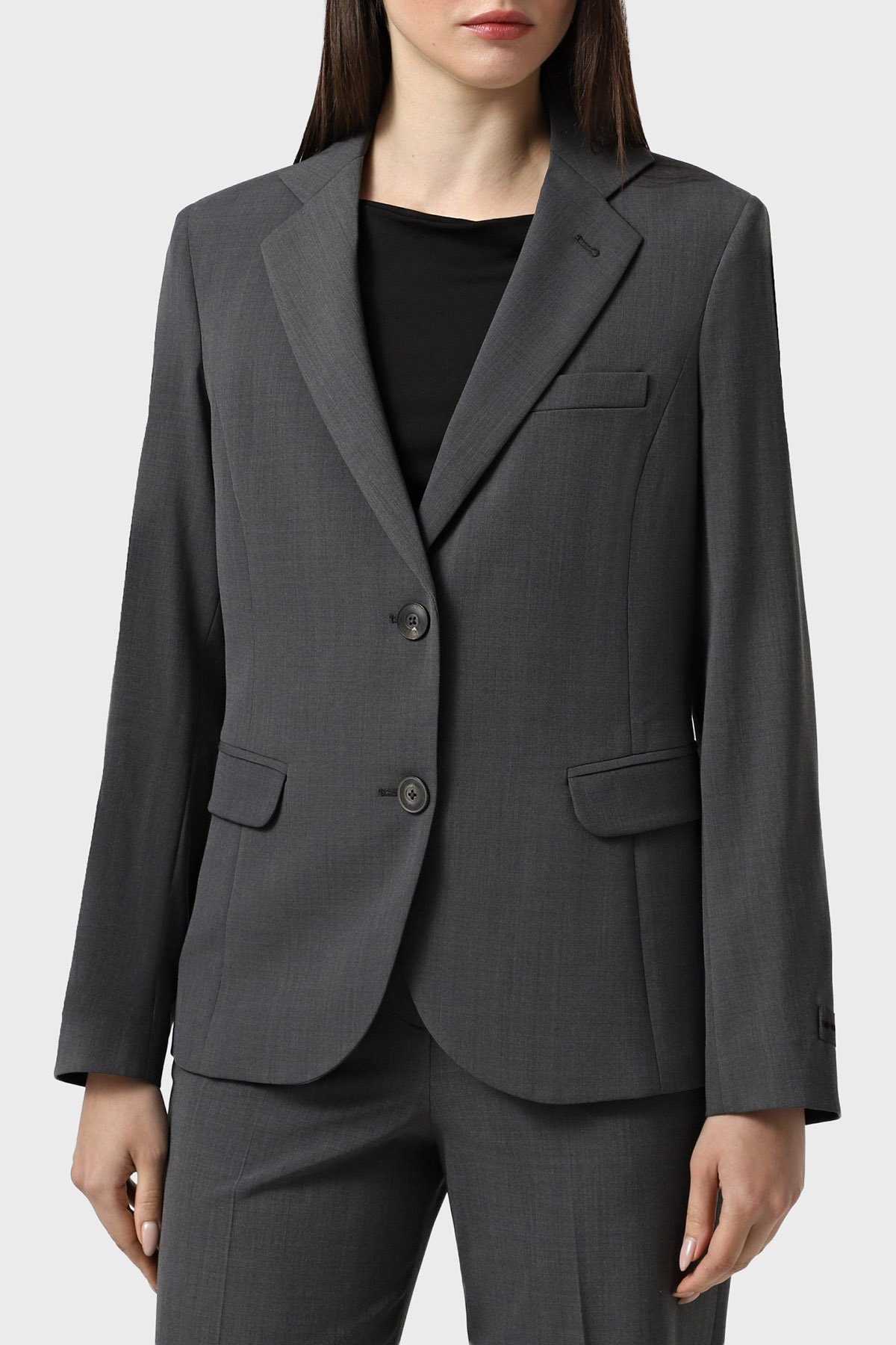 Yün Karışımlı Regular Fit Kruvaze Yaka Blazer Bayan Ceket EW002137 TE15608 O8002 AÇIK GRİ MELANJ