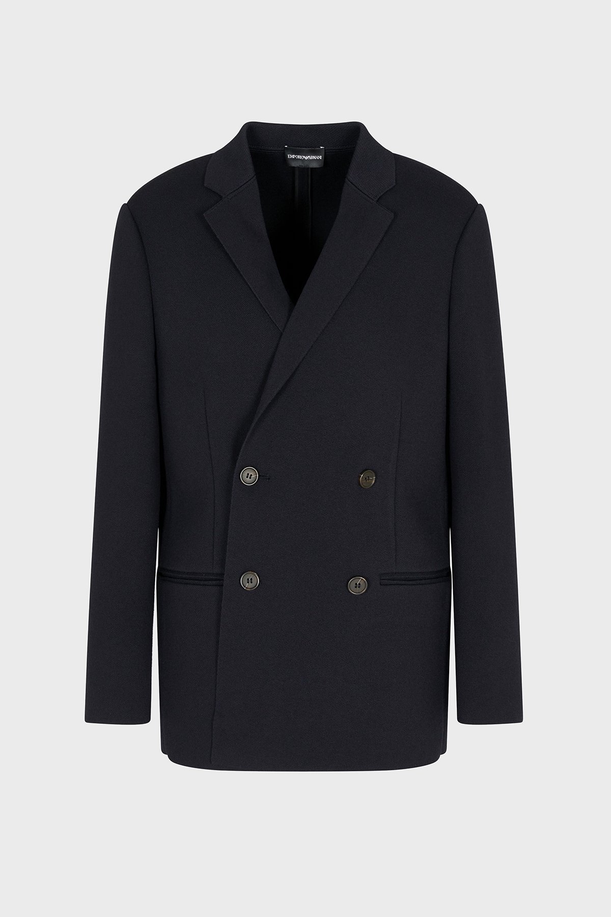 Yün Karışımlı Regular Fit Kruvaze Yaka Blazer Erkek Ceket EM002428 AF19441 UB118 LACİVERT