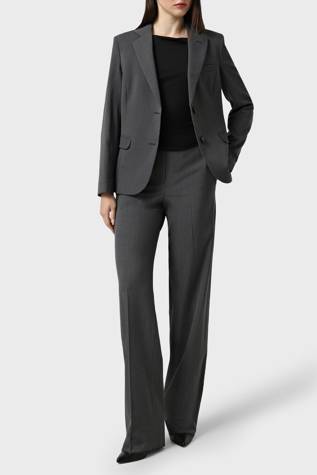 Yün Karışımlı Regular Fit Yüksek Bel Geniş Paça Pantolon Bayan Ceket EW002046 TE15608 O8002 AÇIK GRİ MELANJ