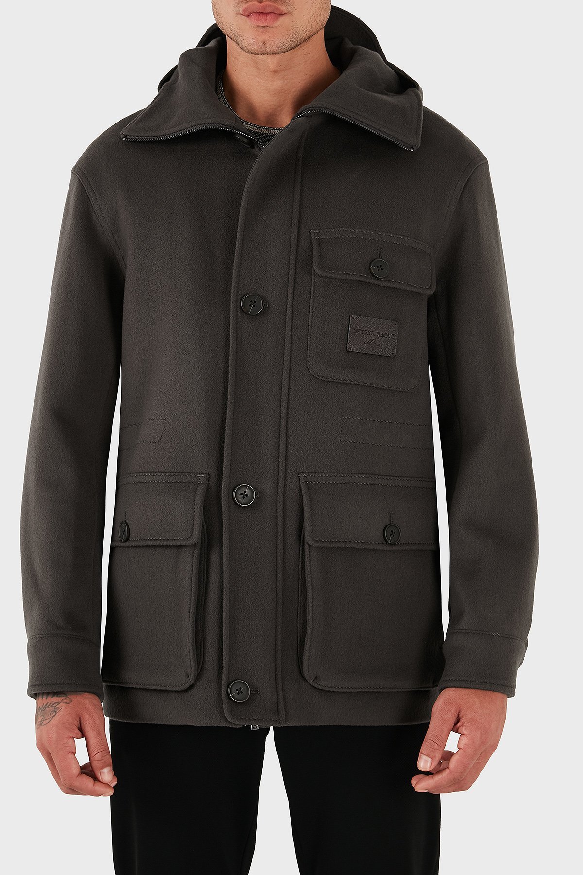 Yün ve Kaşmir Karışımlı Regular Fit Kapüşonlu Erkek Mont EM003183 AF18229 U8112 ANTRASİT