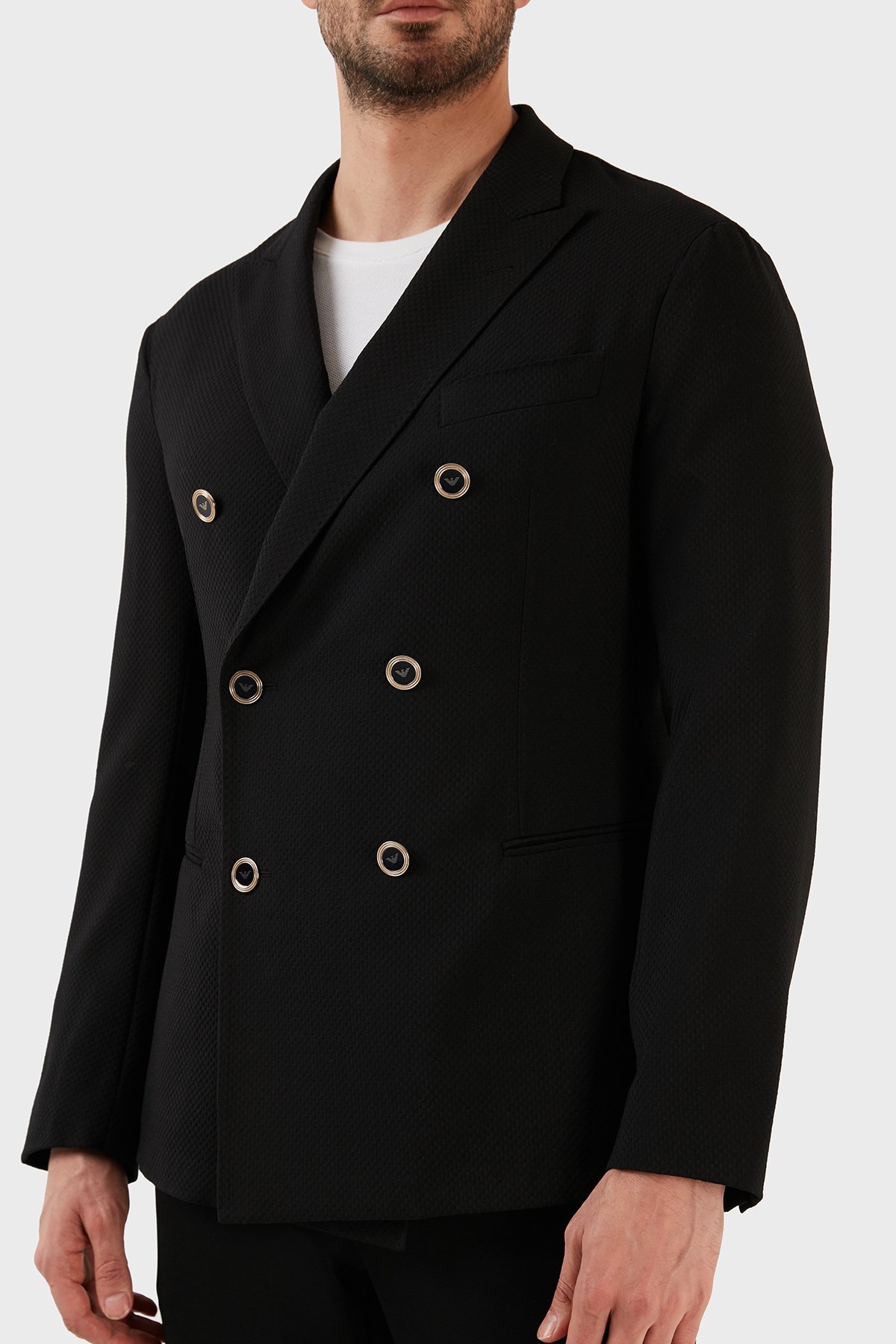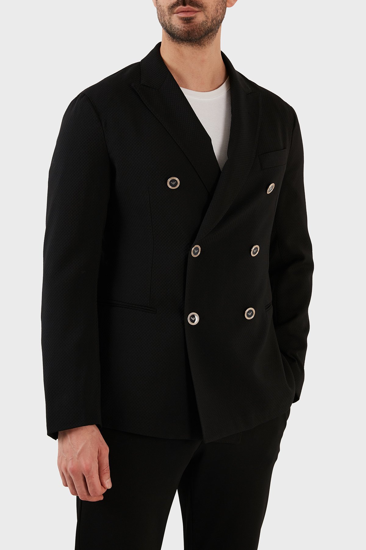 Yünlü Çift Yırtmaçlı Kruvaze Erkek Ceket D41GC6 D1801 999 SİYAH