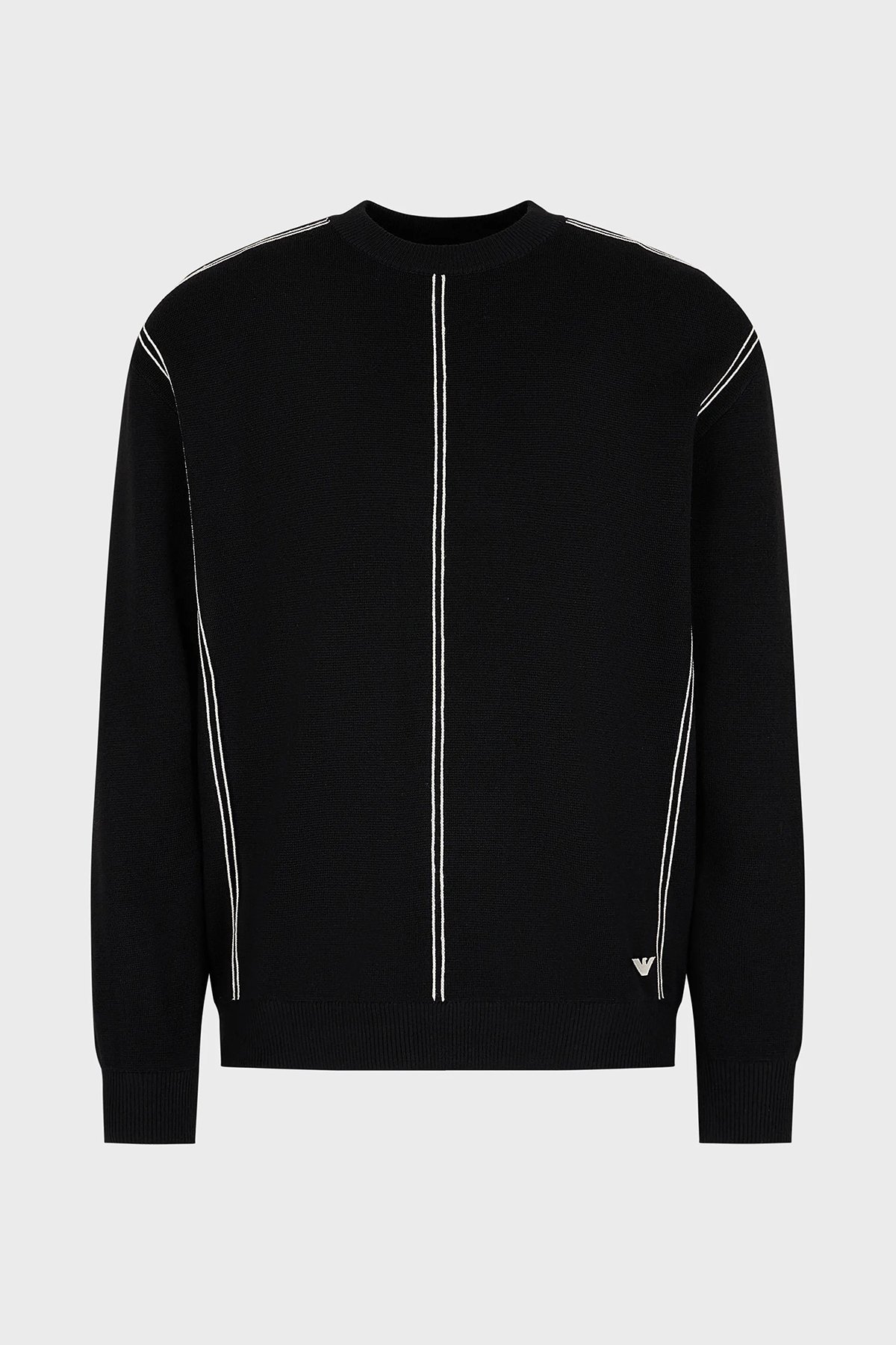 Yünlü Jakarlı Çizgi Desenli Bisiklet Yaka Regular Fit Erkek Kazak 6R1MX3 1MOZZ 0999 SİYAH