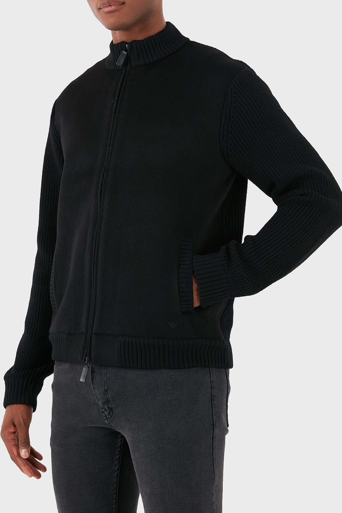 Yünlü Logolu Regular Fit Dik Yaka Erkek Hırka 6D1BY2 1MF9Z 0999 SİYAH
