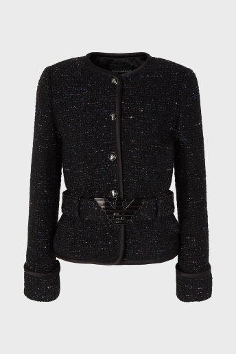 Yünlü Metalik Marka Logo Kemerli Regular Fit Tüvit Bayan Ceket H4NG1B E9902 010 SİYAH
