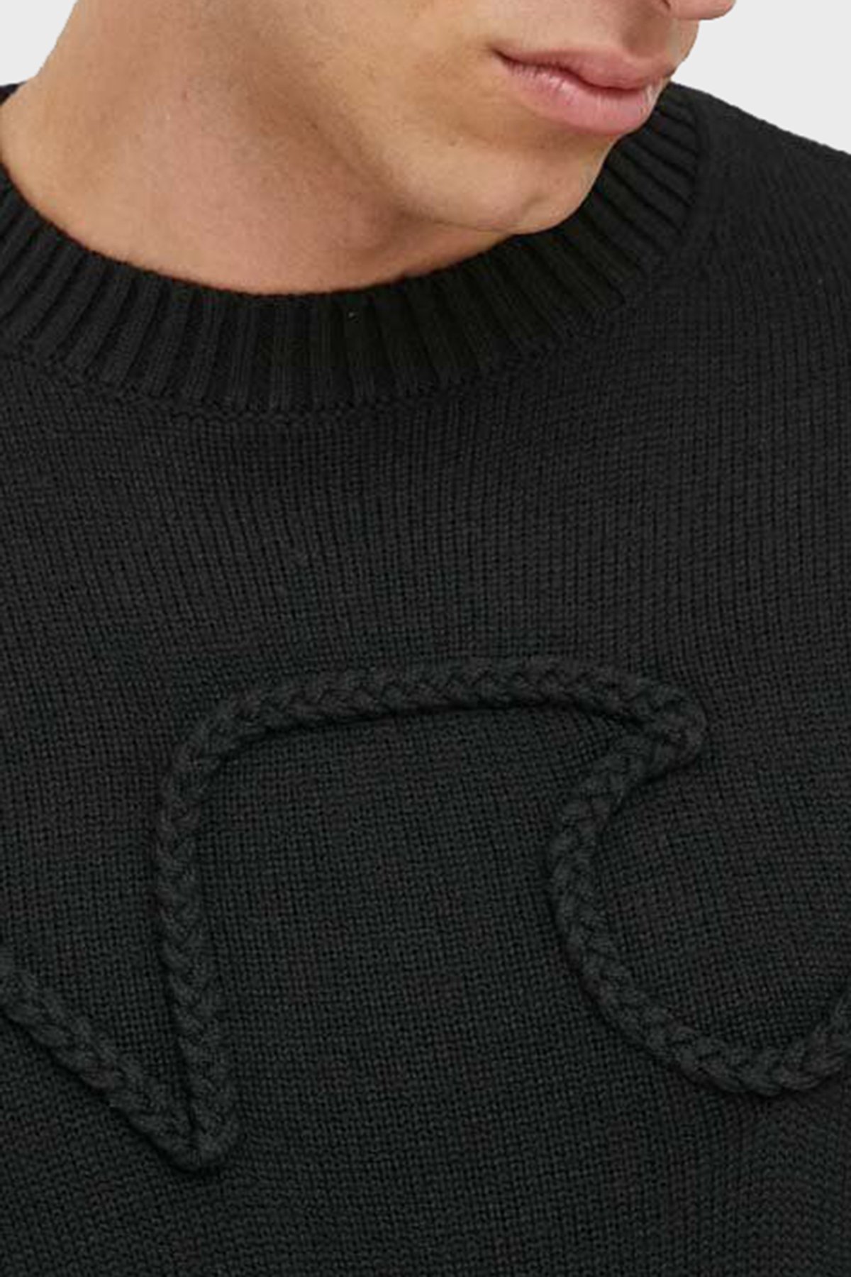 Yünlü Örgü Logolu Bisiklet Yaka Regular Fit Erkek Kazak 6R1MXP 1MMAZ F087 SİYAH