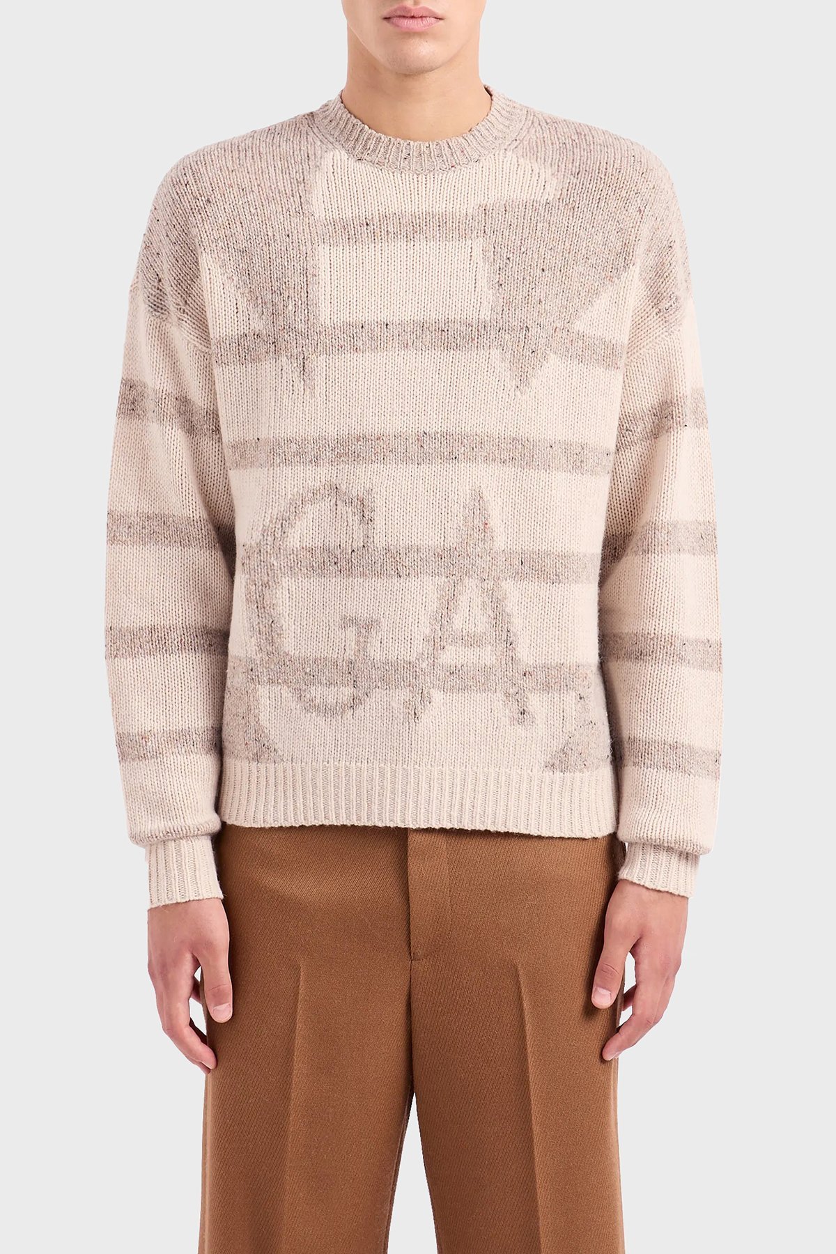 Yünlü Oversize Bisiklet Yaka Erkek Kazak 6R1MXR 1MMCZ F1F7 BEJ