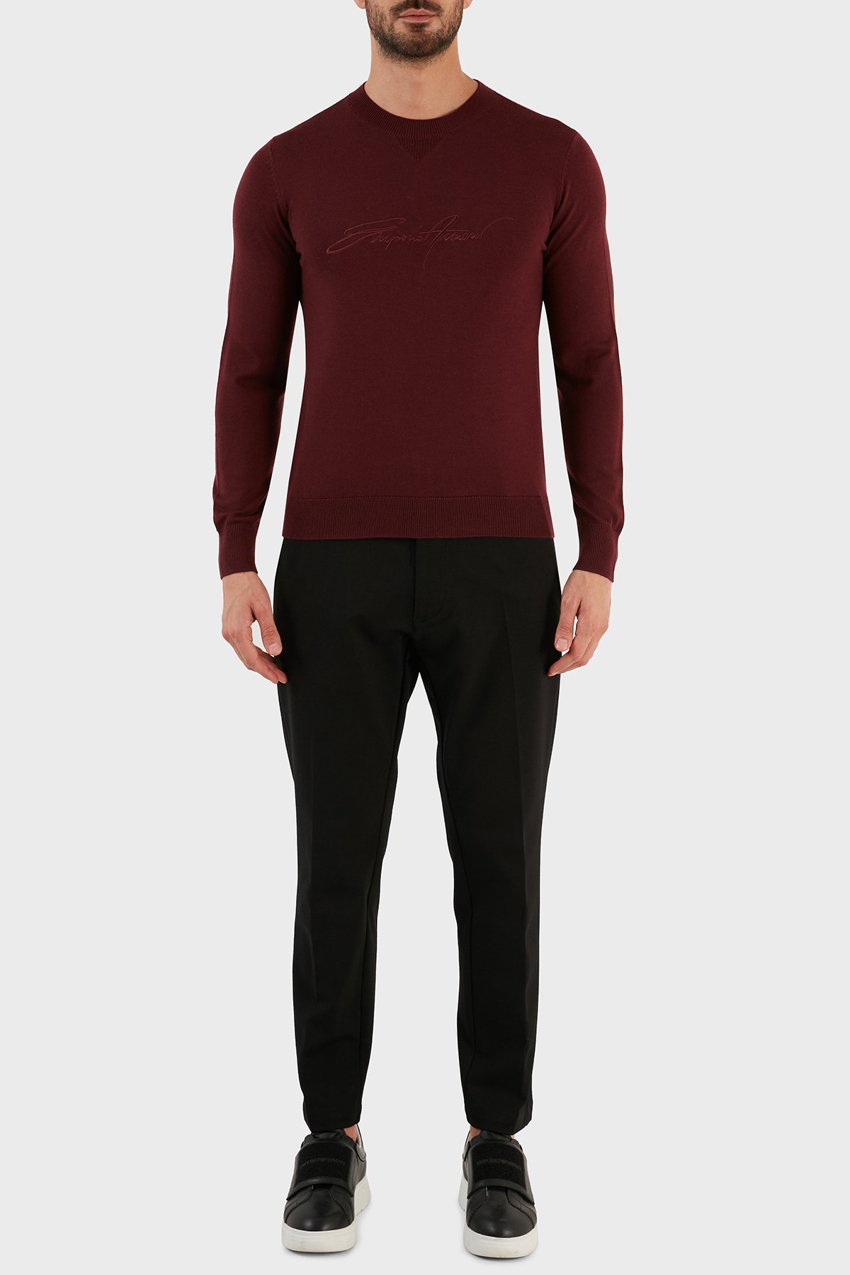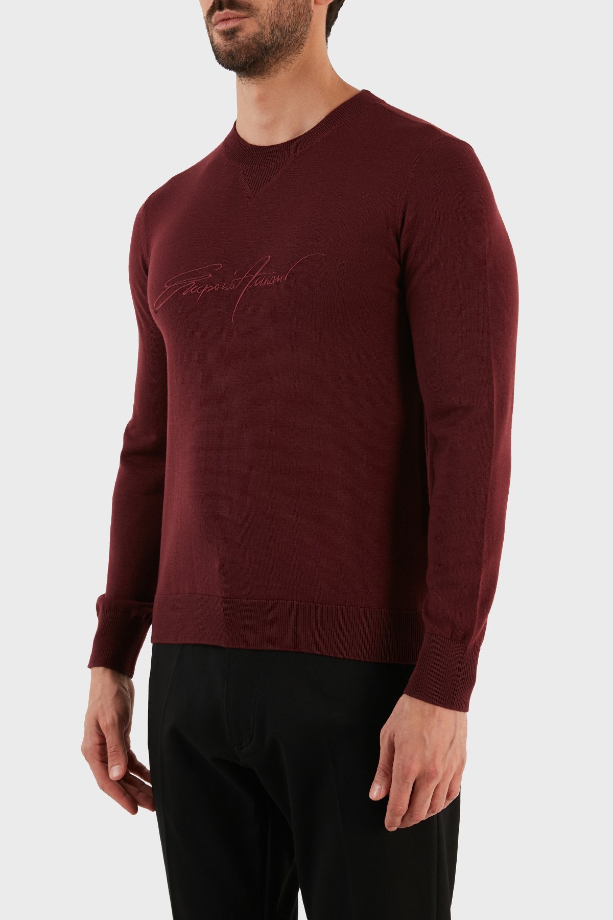 Yünlü Regular Fit Bisiklet Yaka Erkek Kazak 6L1MXJ 1MBPZ 0397 BORDO