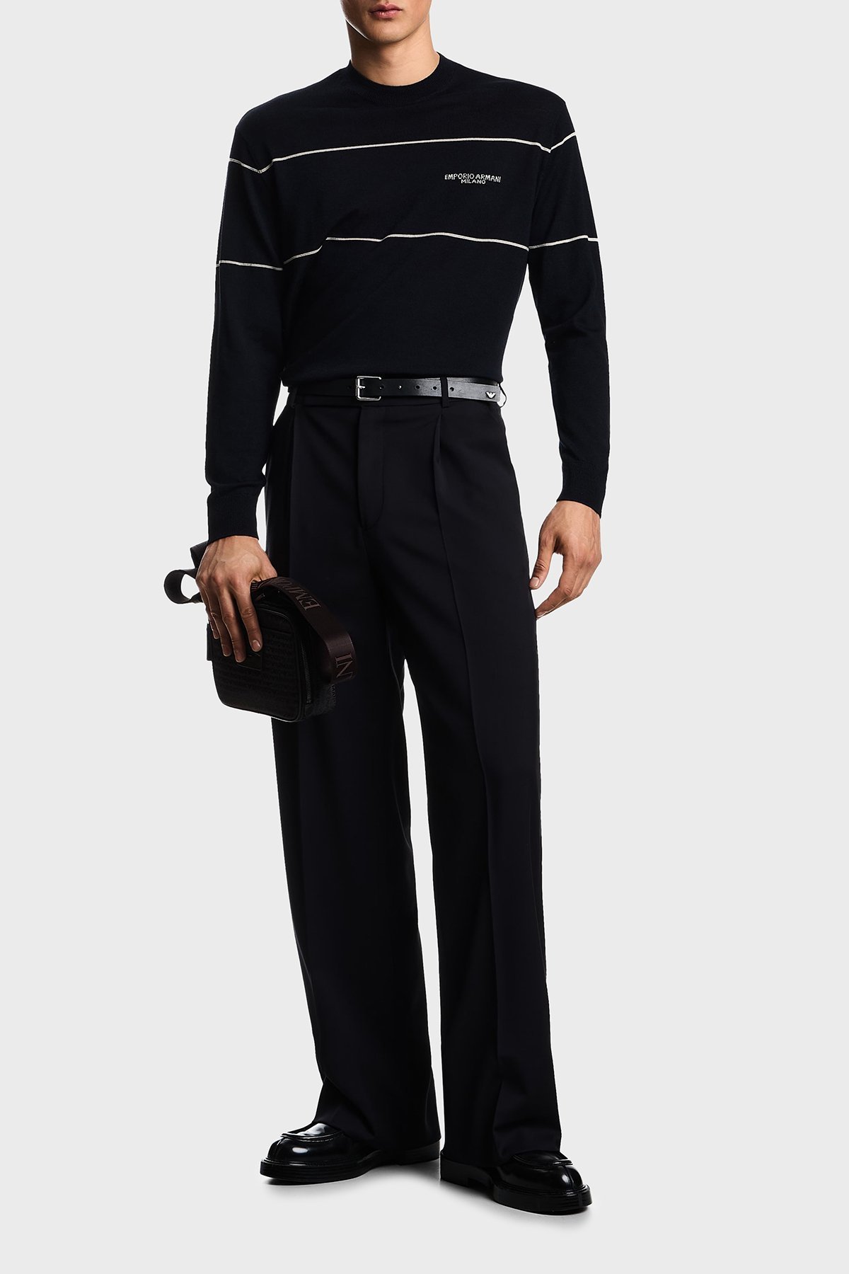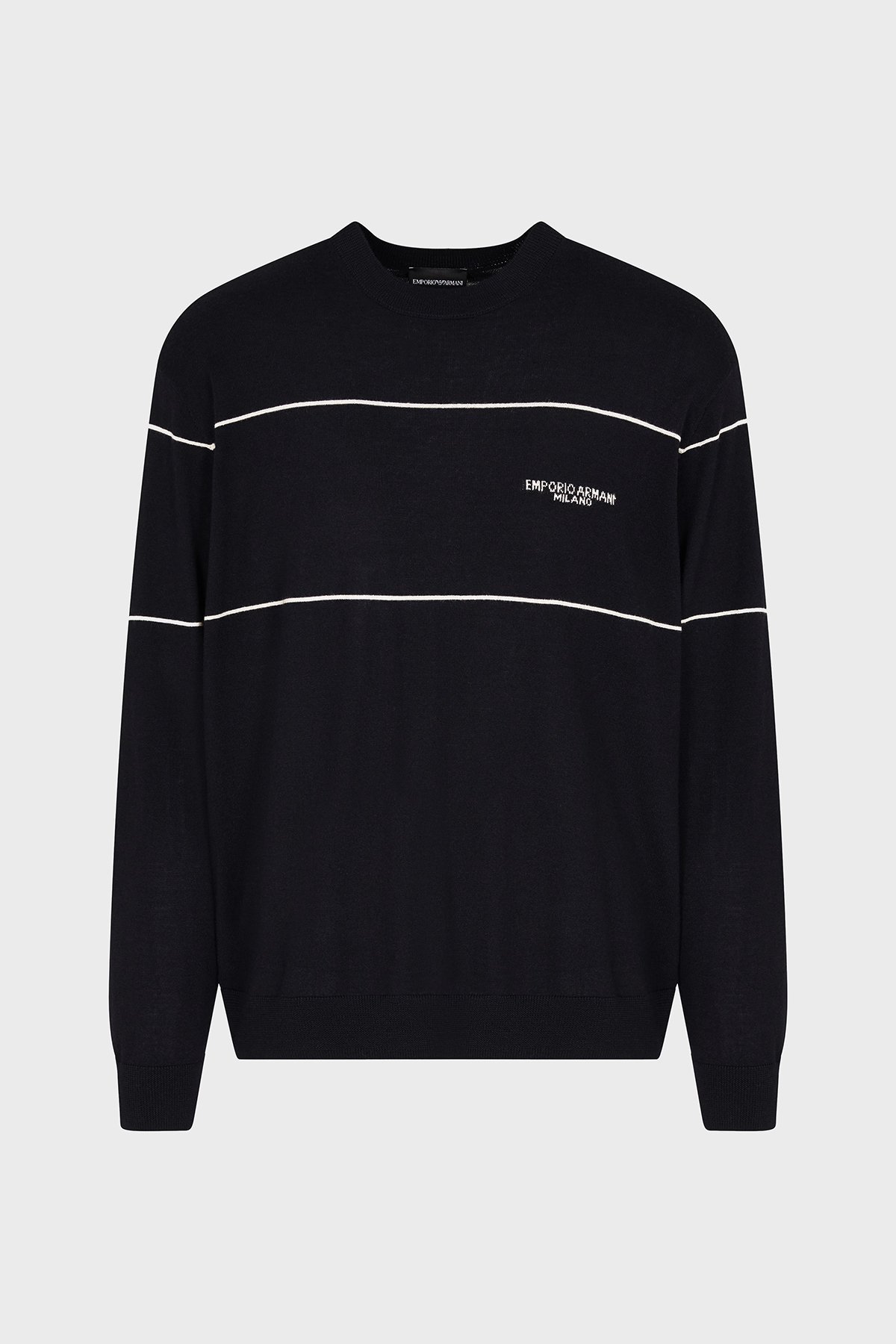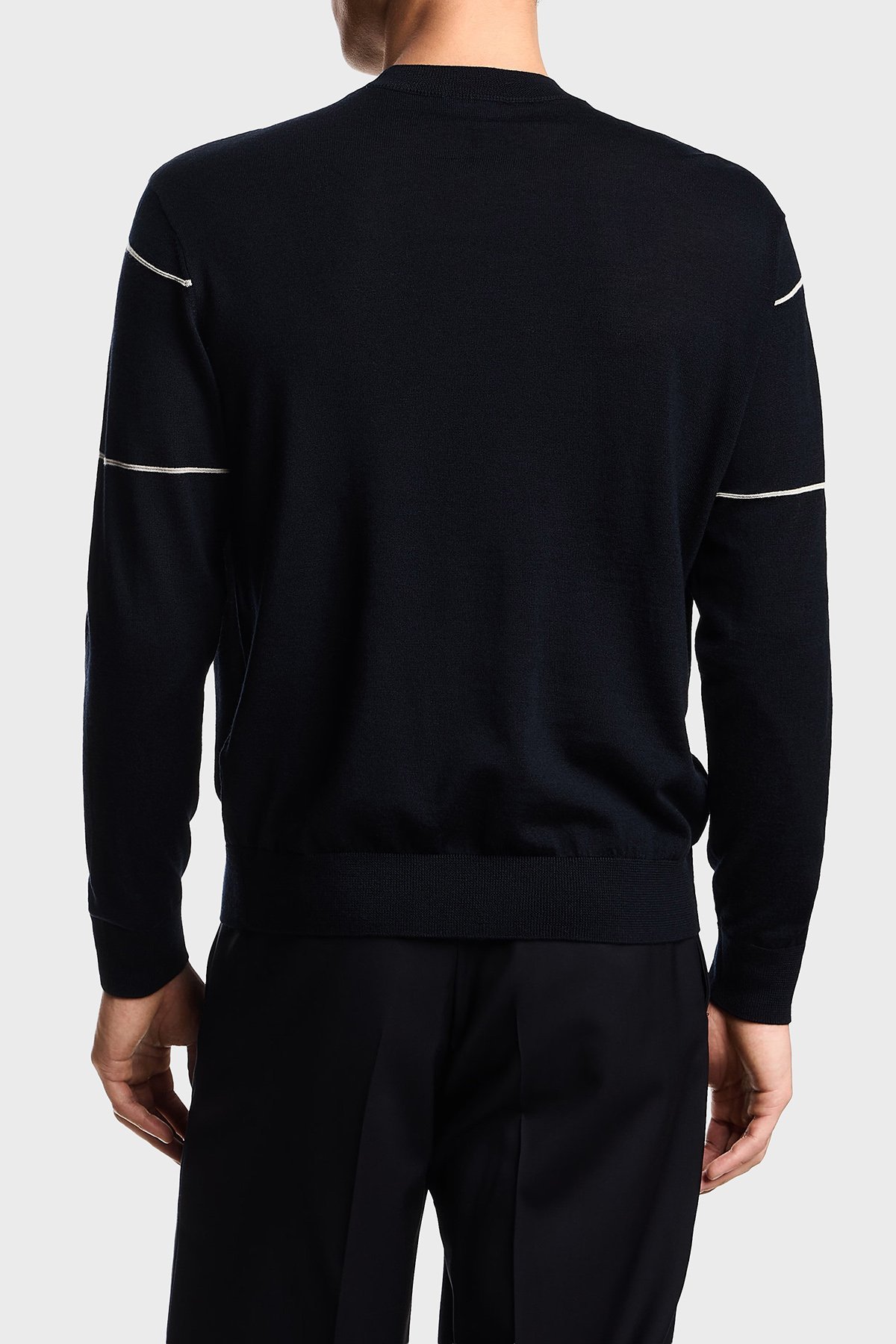 Yünlü Şerit Detaylı Regular Fit Bisiklet Yaka Erkek Kazak EM002796 AF14199 MB173 LACİVERT