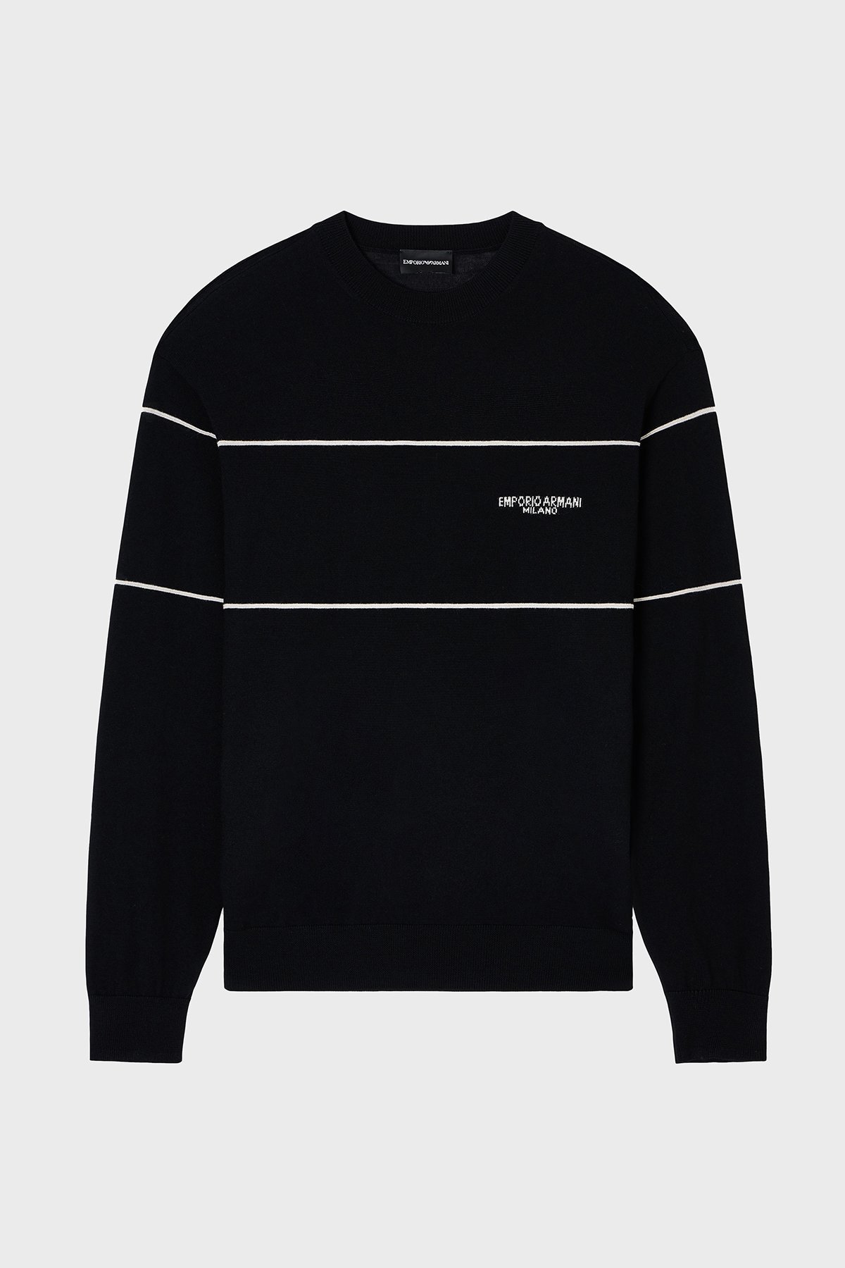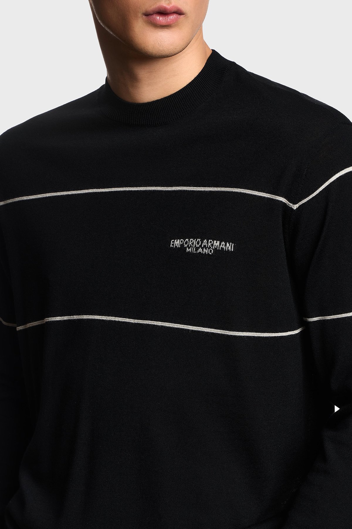 Yünlü Şerit Detaylı Regular Fit Bisiklet Yaka Erkek Kazak EM002796 AF14199 MC156 SİYAH