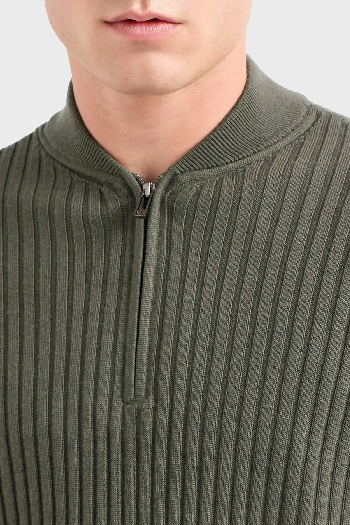 Kaburga örgülü , nervürlü, yarım fermuarlı dik yaka