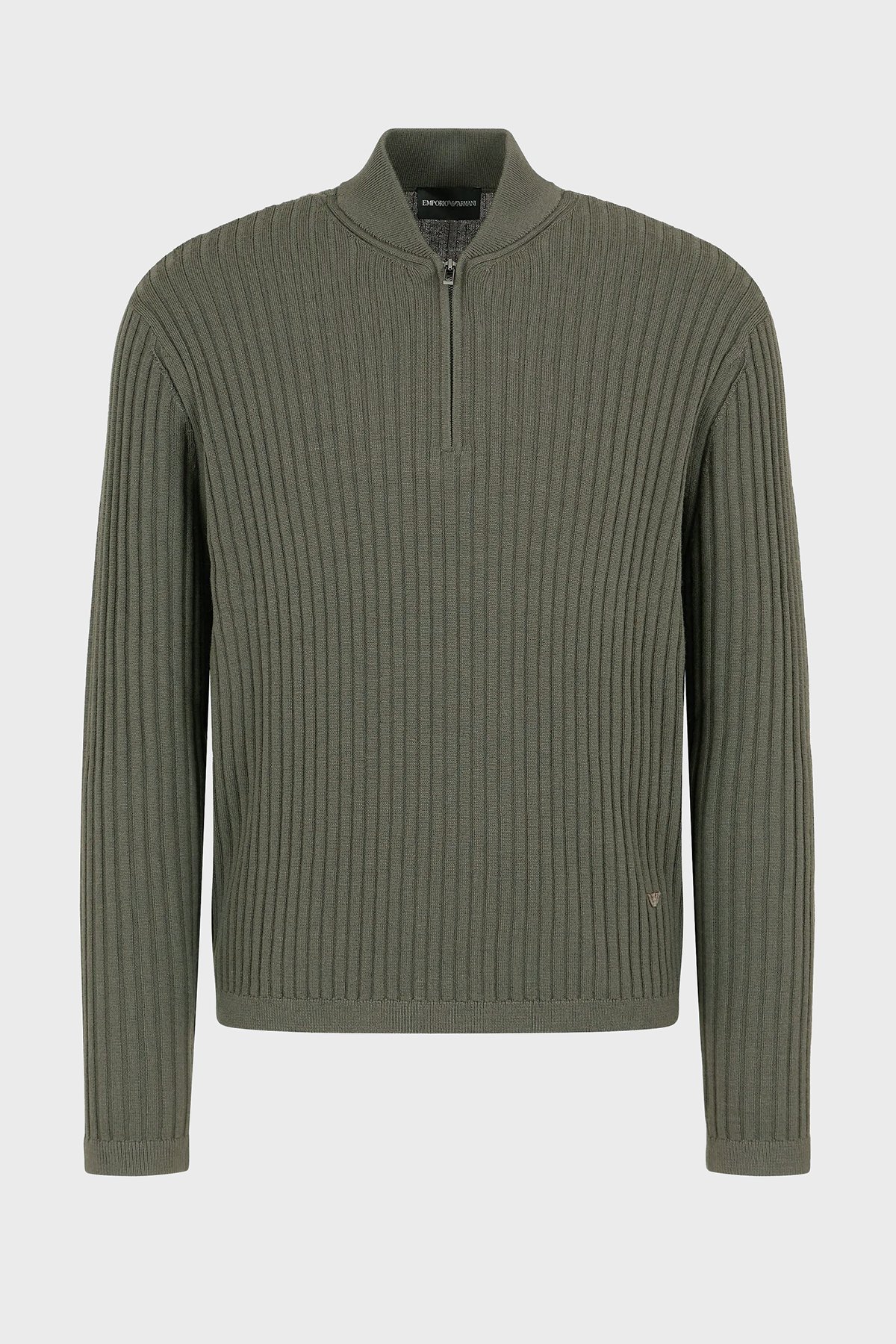 Yünlü Slim Fit Yarım Fermuarlı Dik Yaka Erkek Kazak 6D1MXP 1MKDZ 06K0 HAKİ