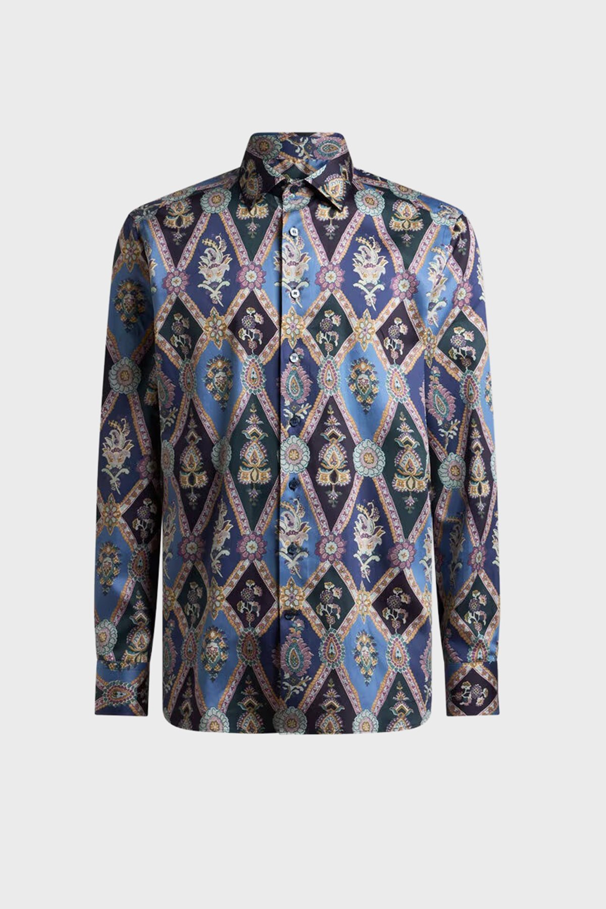 Desenli % 100 Pamuk Regular Fit Kent Yaka Saten Erkek Gömlek MRIB0001 99SA5L4 X0883 LACİVERT