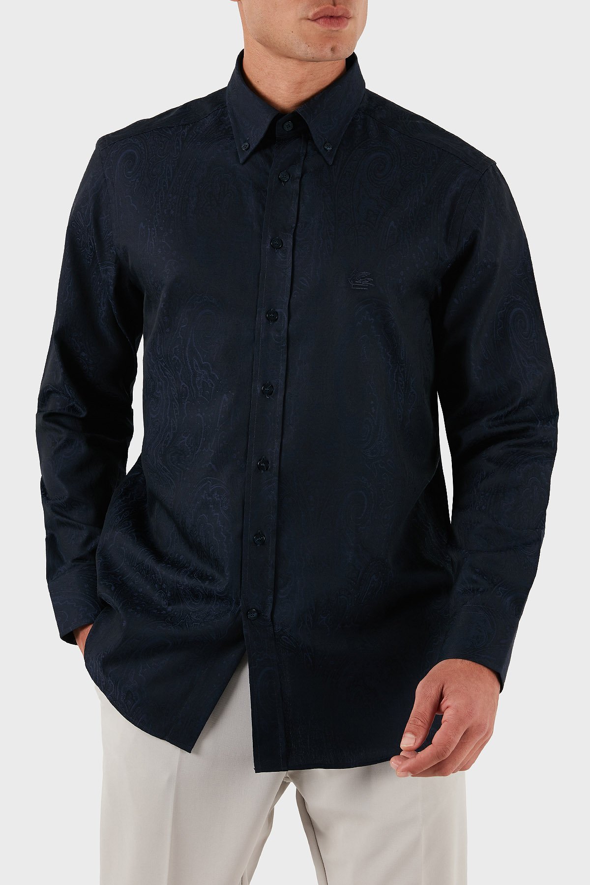 Jakarlı % 100 Pamuk Regular Fit Düğmeli Yaka Erkek Gömlek MRIB0004 AQ043 B0065 LACİVERT