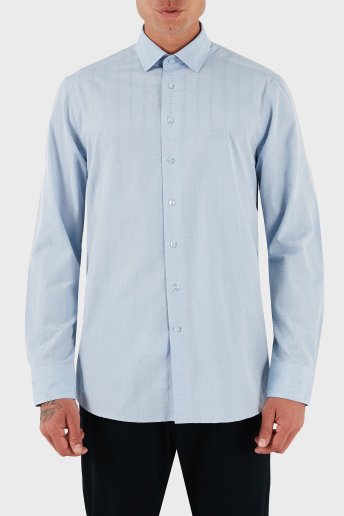 Logolu % 100 Pamuk Regular Fit Uzun Kollu Erkek Gömlek MRIB000299 TR579 B0665 MAVİ