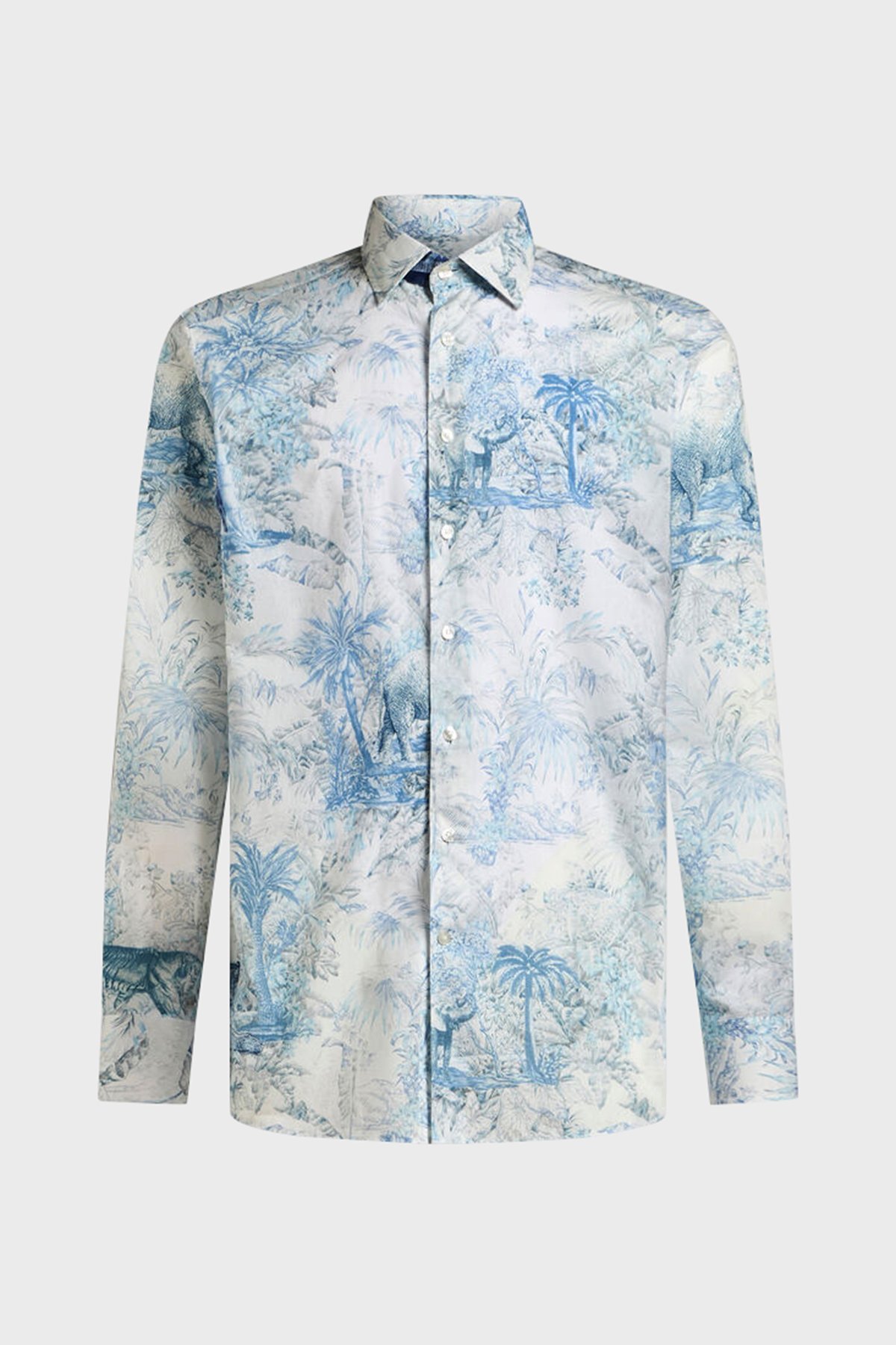 Safari Desenli % 100 Pamuk Regular Fit Erkek Gömlek MRIB000199 SA5F4 X0883 MAVİ-BEYAZ