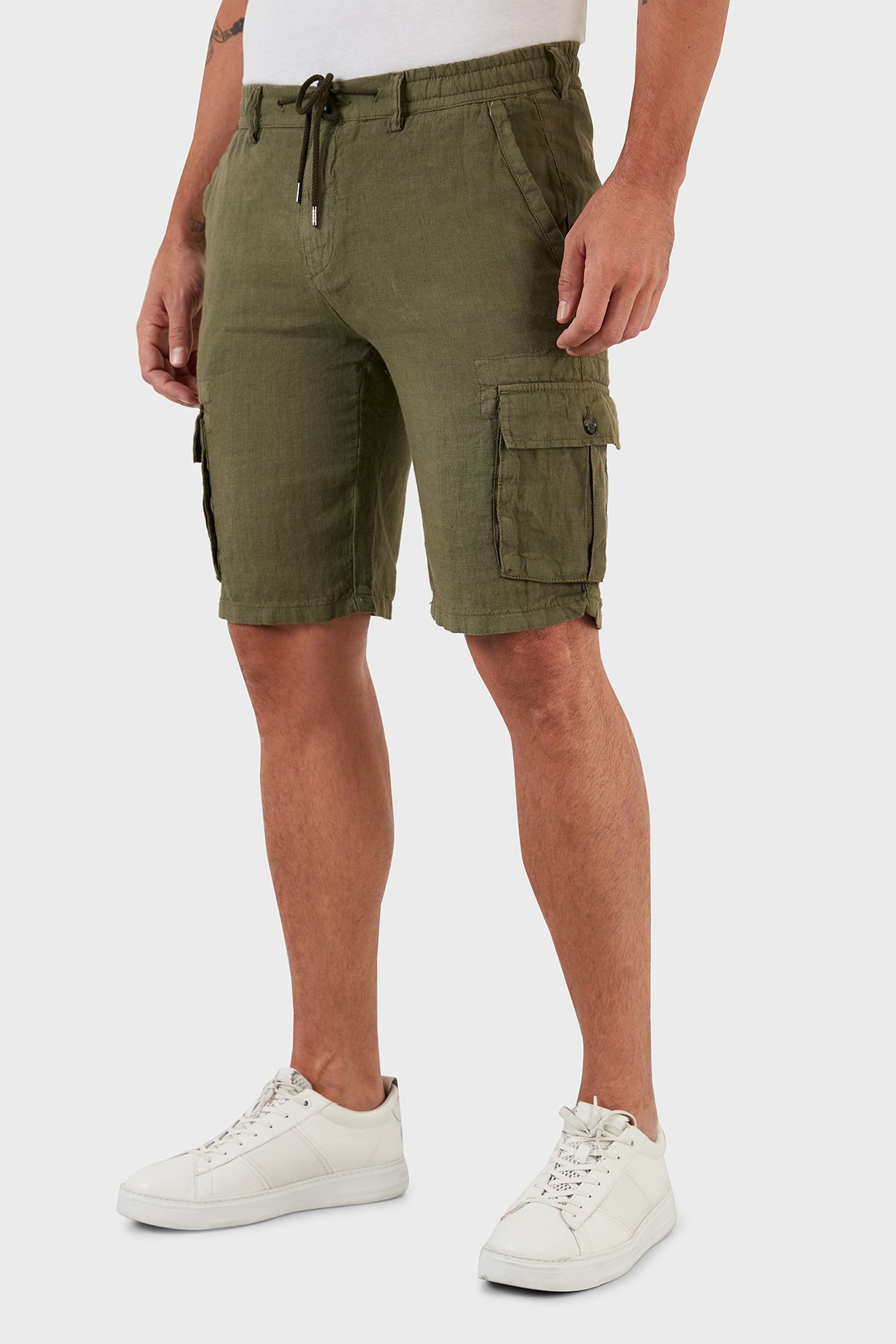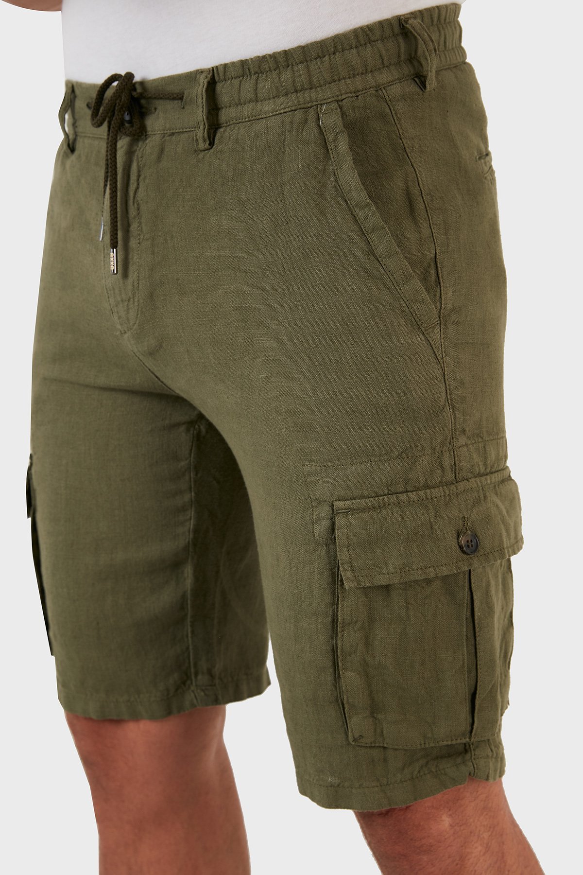 Belden Bağlamalı Cepli Regular Fit % 100 Keten Erkek Short 630JURIŞORT HAKİ