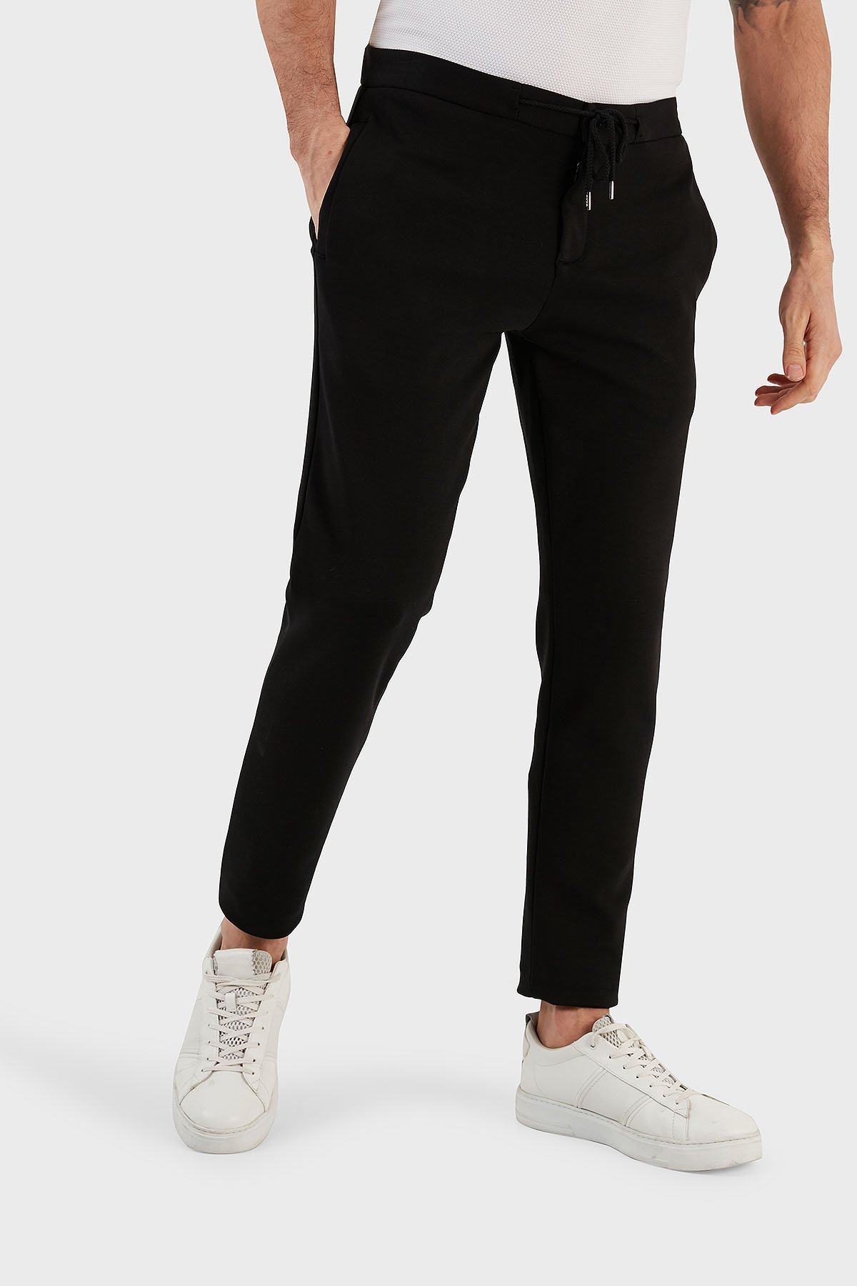 Pamuk Karışımlı Belden Bağlamalı Normal Bel Düz Paça Slim Fit Erkek Pantolon 630GBT52A SİYAH