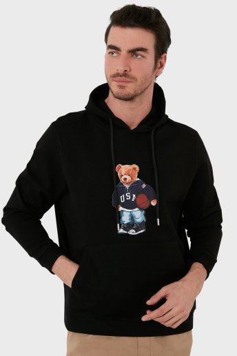 Pamuklu Baskılı Kanguru Cepli Kapüşonlu Erkek Sweat 6141003 SİYAH