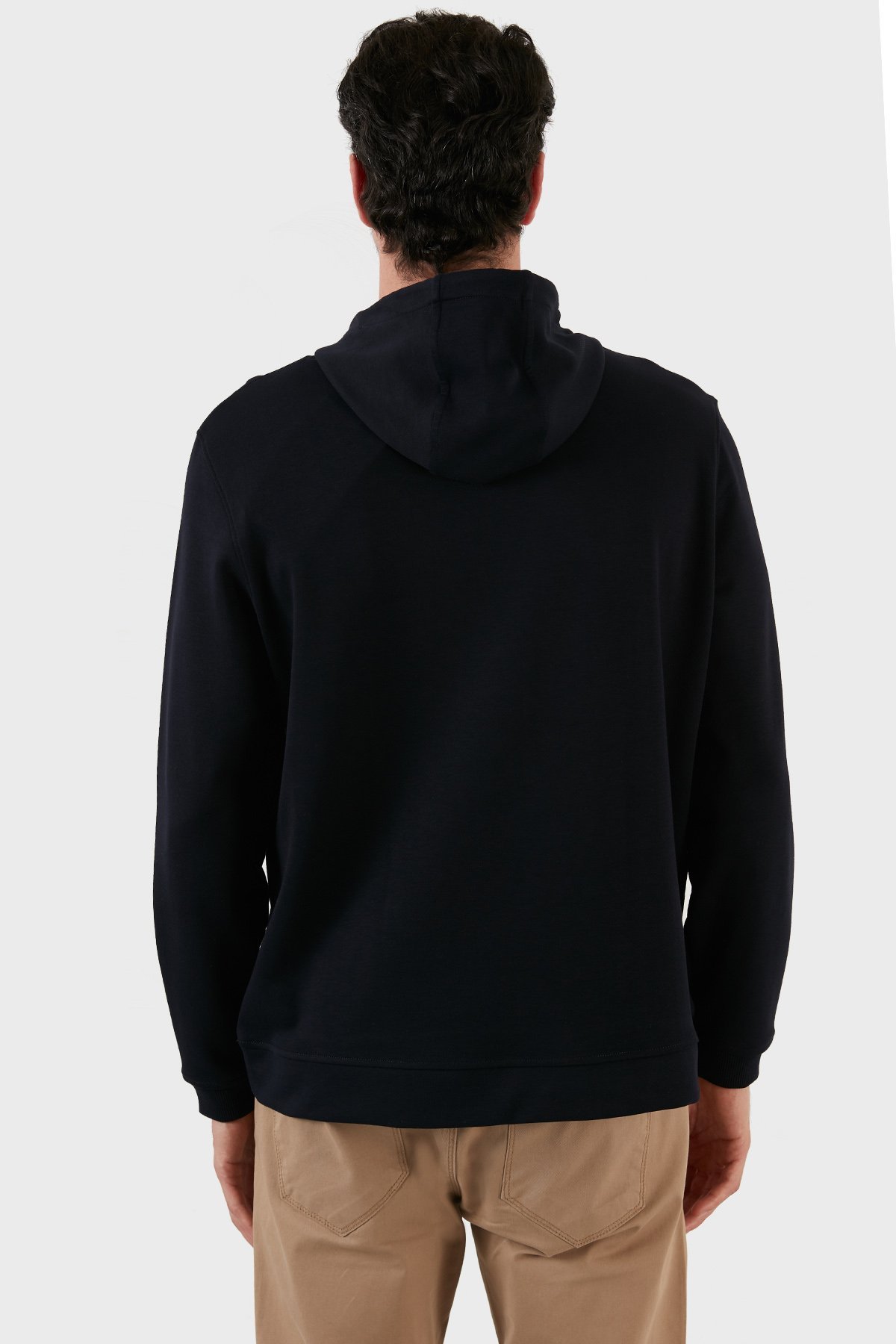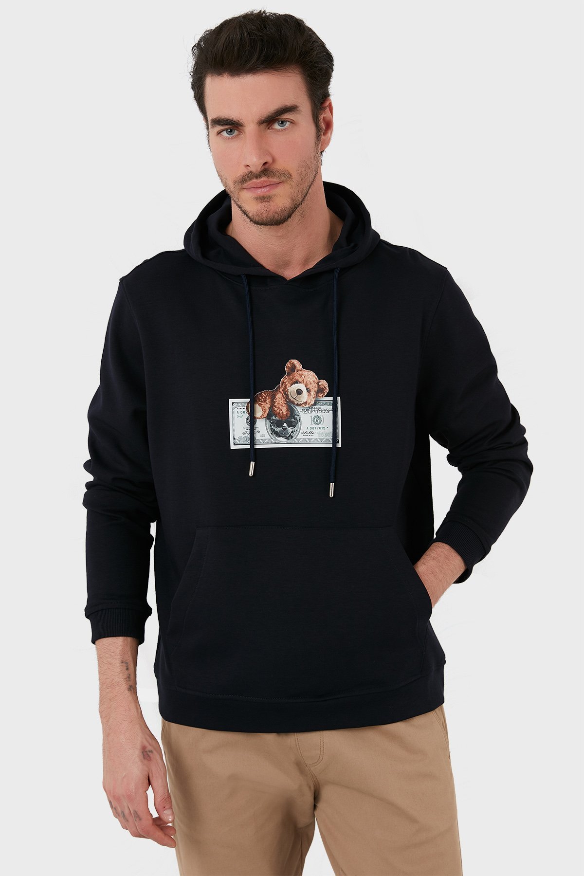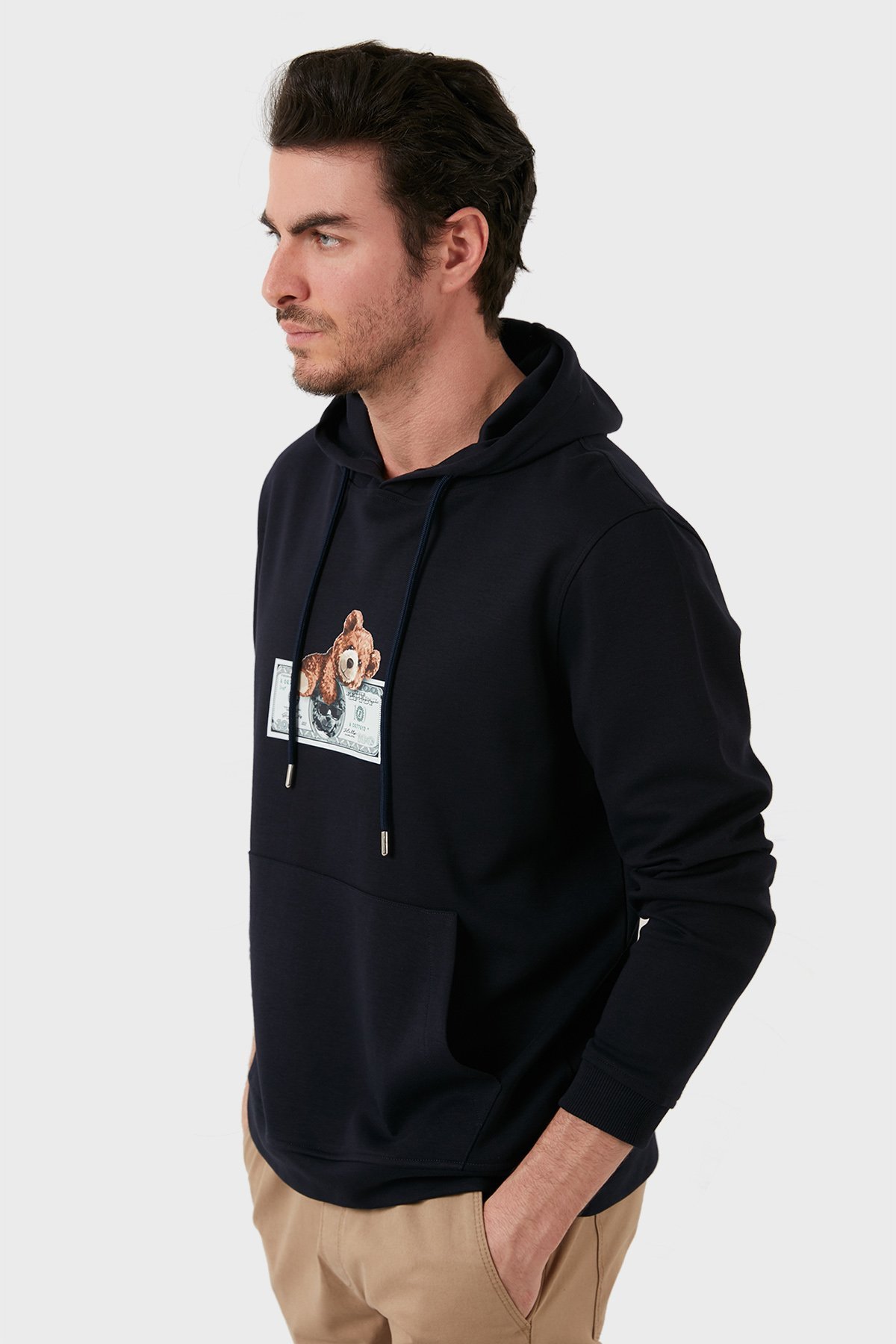 Pamuklu Baskılı Kanguru Cepli Kapüşonlu Erkek Sweat 6141004 LACİVERT