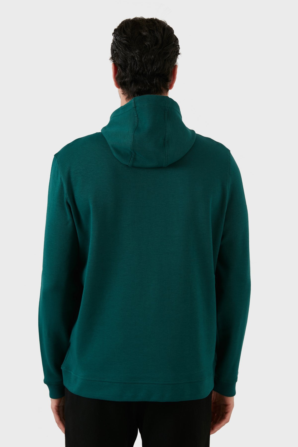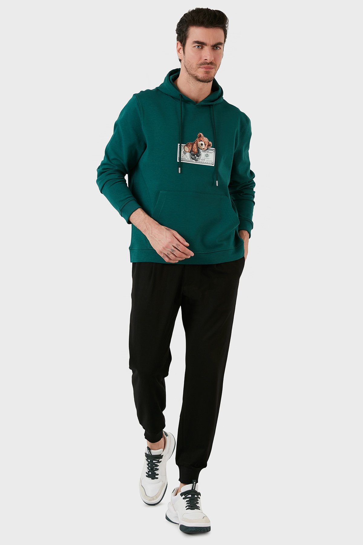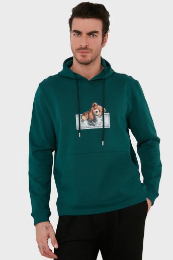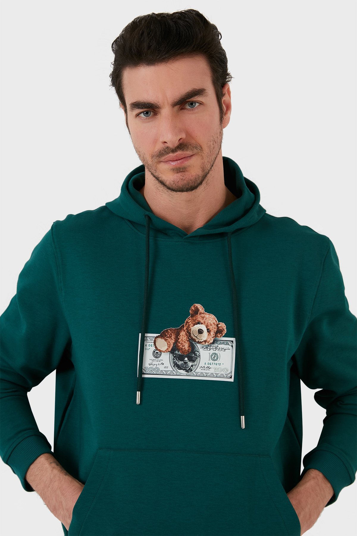 Pamuklu Baskılı Kanguru Cepli Kapüşonlu Erkek Sweat 6141004 PETROL