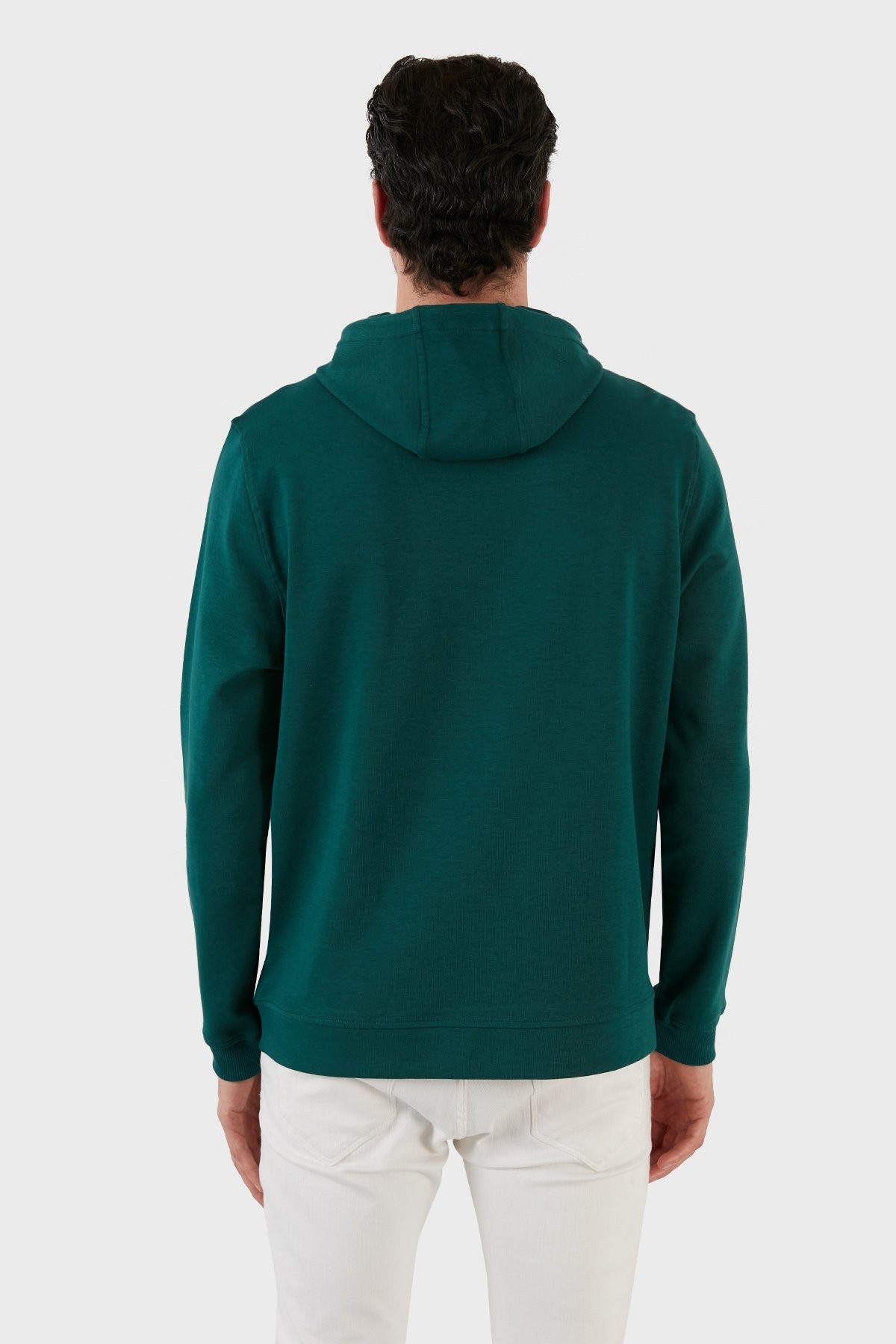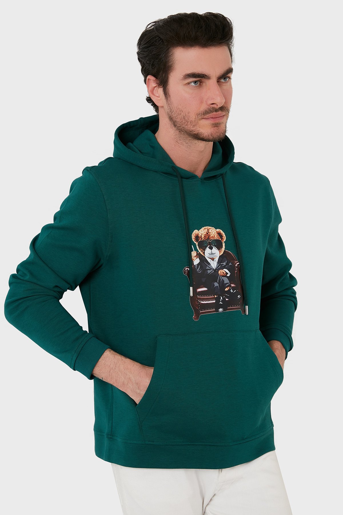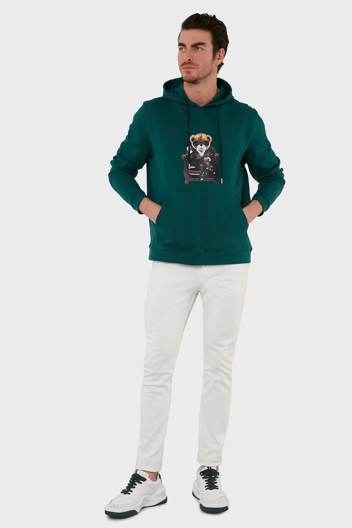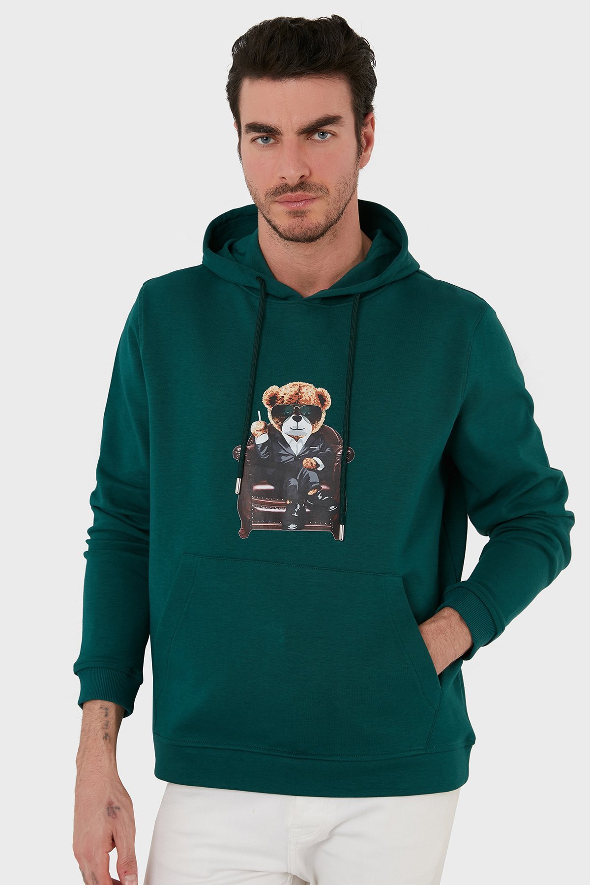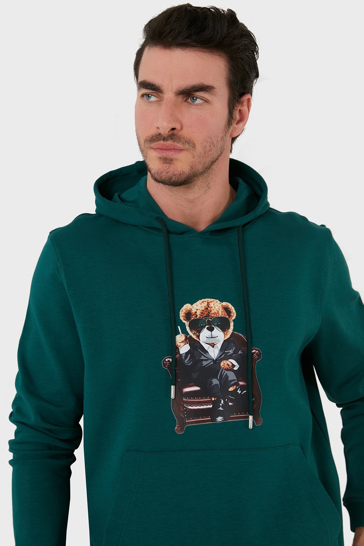Pamuklu Baskılı Kanguru Cepli Kapüşonlu Erkek Sweat 6141005 PETROL