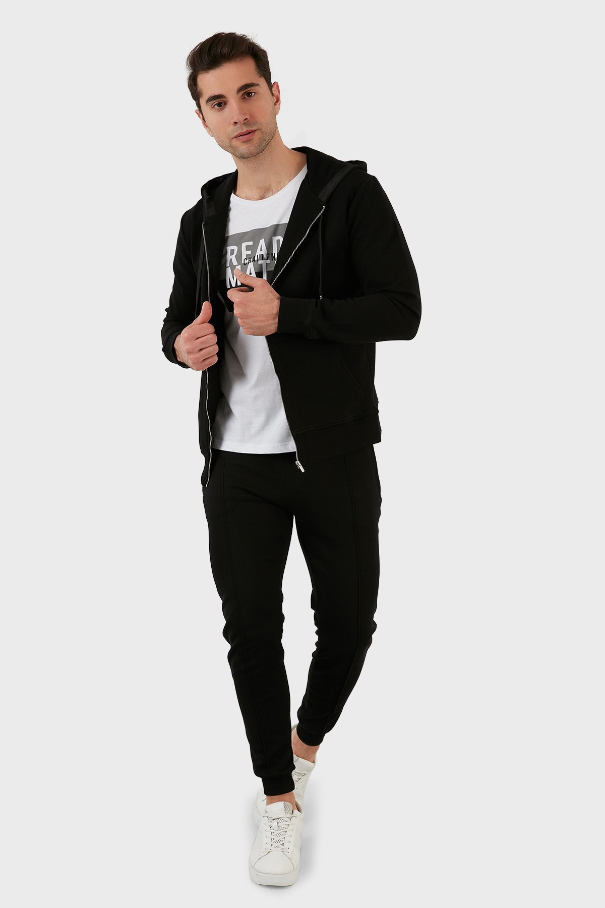 Pamuklu Cepli Fermuarlı Kapüşonlu Erkek Sweat 6141001 SİYAH