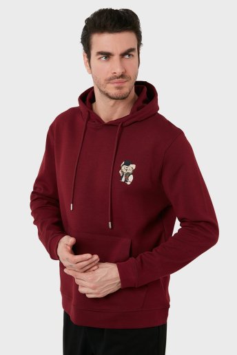Pamuklu Kanguru Cepli Kapüşonlu Erkek Sweat 6141006 BORDO