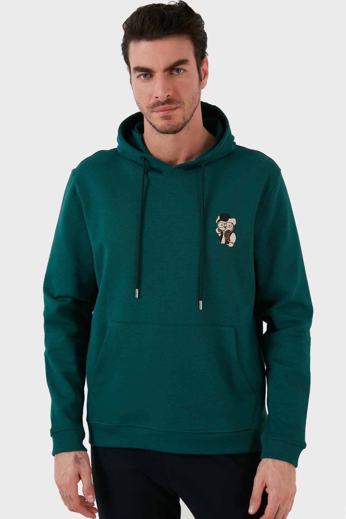 Pamuklu Kanguru Cepli Kapüşonlu Erkek Sweat 6141006 PETROL
