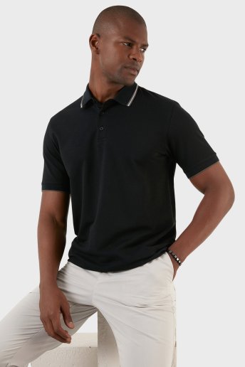 Pamuklu Regular Fit Düğmeli T Shirt Erkek Polo EX661 SİYAH
