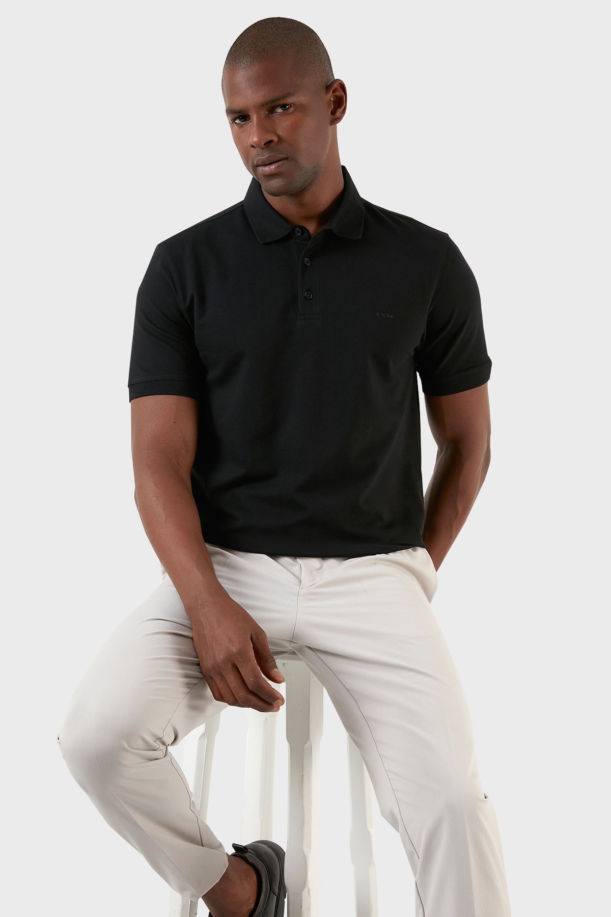 Pamuklu Regular Fit Düğmeli T Shirt Erkek Polo EX661D SİYAH