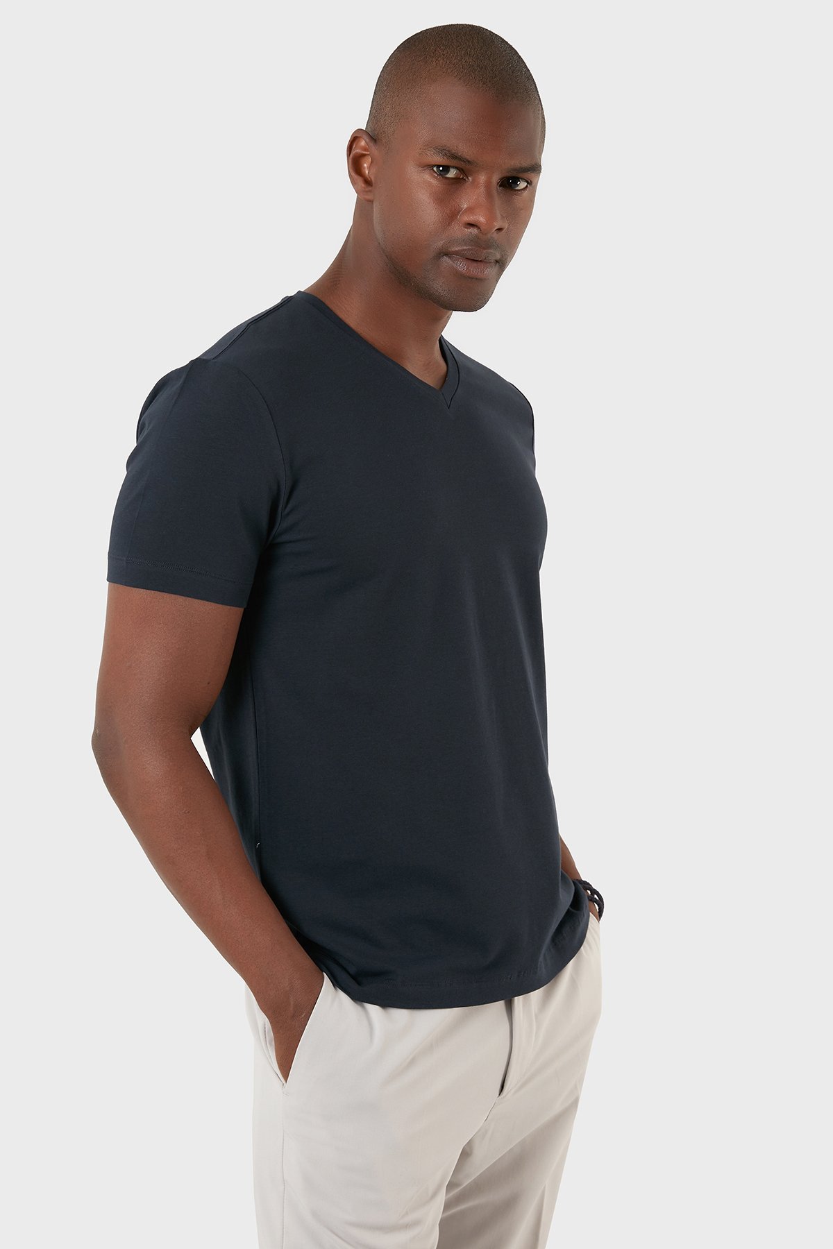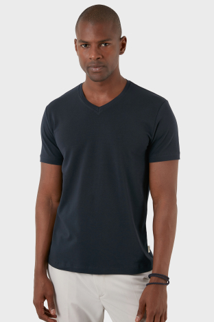 Pamuklu Regular Fit V Yaka Basic Erkek T Shirt MODJ000V LACİVERT