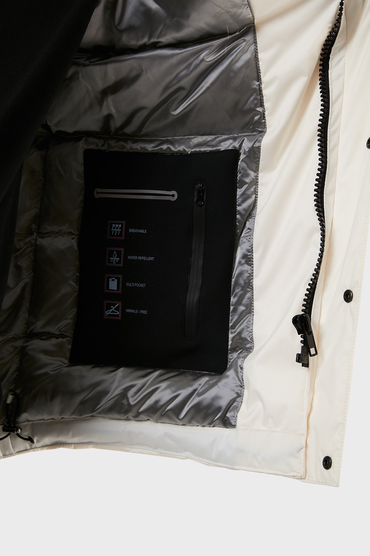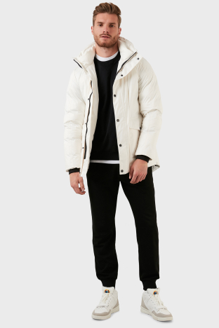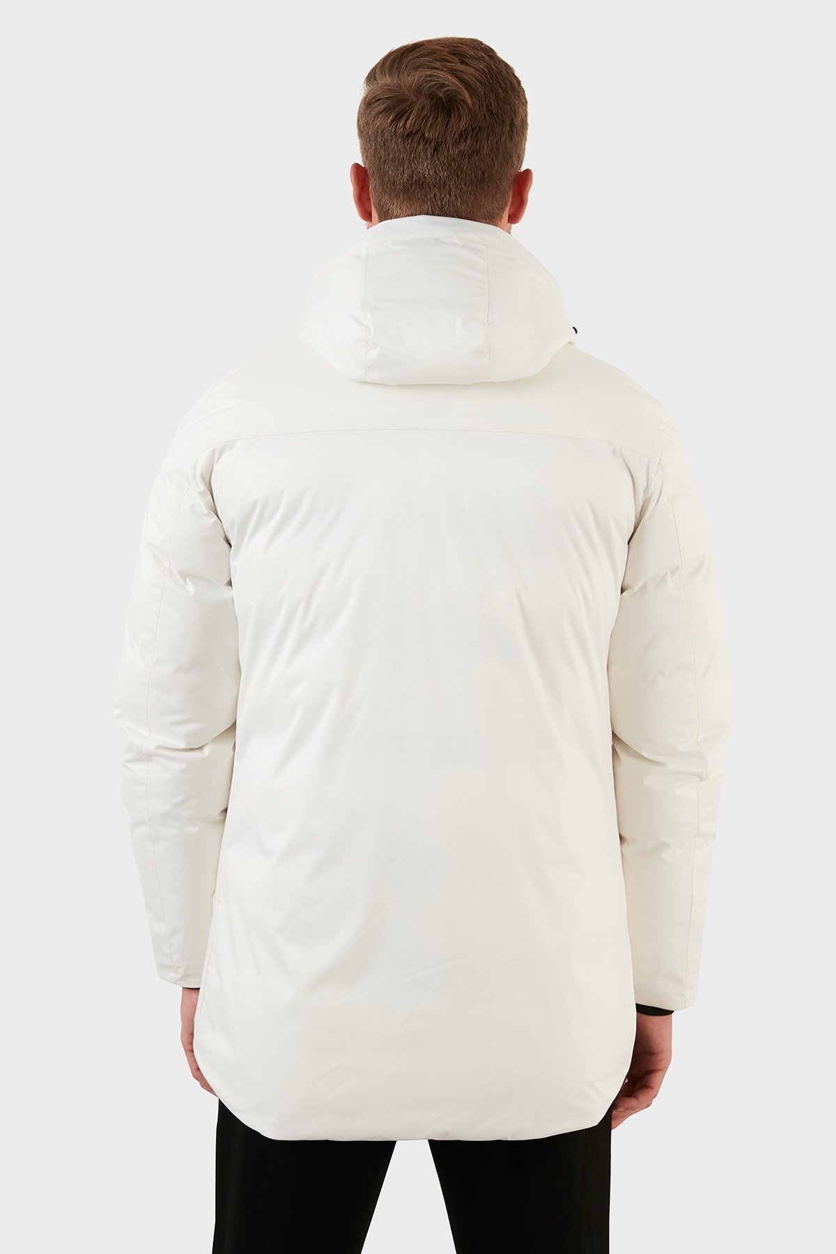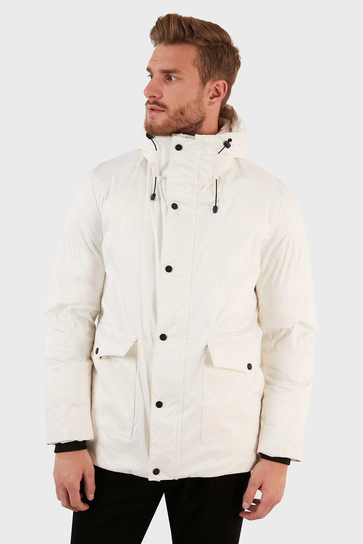 Su Geçirmez Fermuarlı Kapüşonlu Erkek Kaban EXK225508 BEYAZ