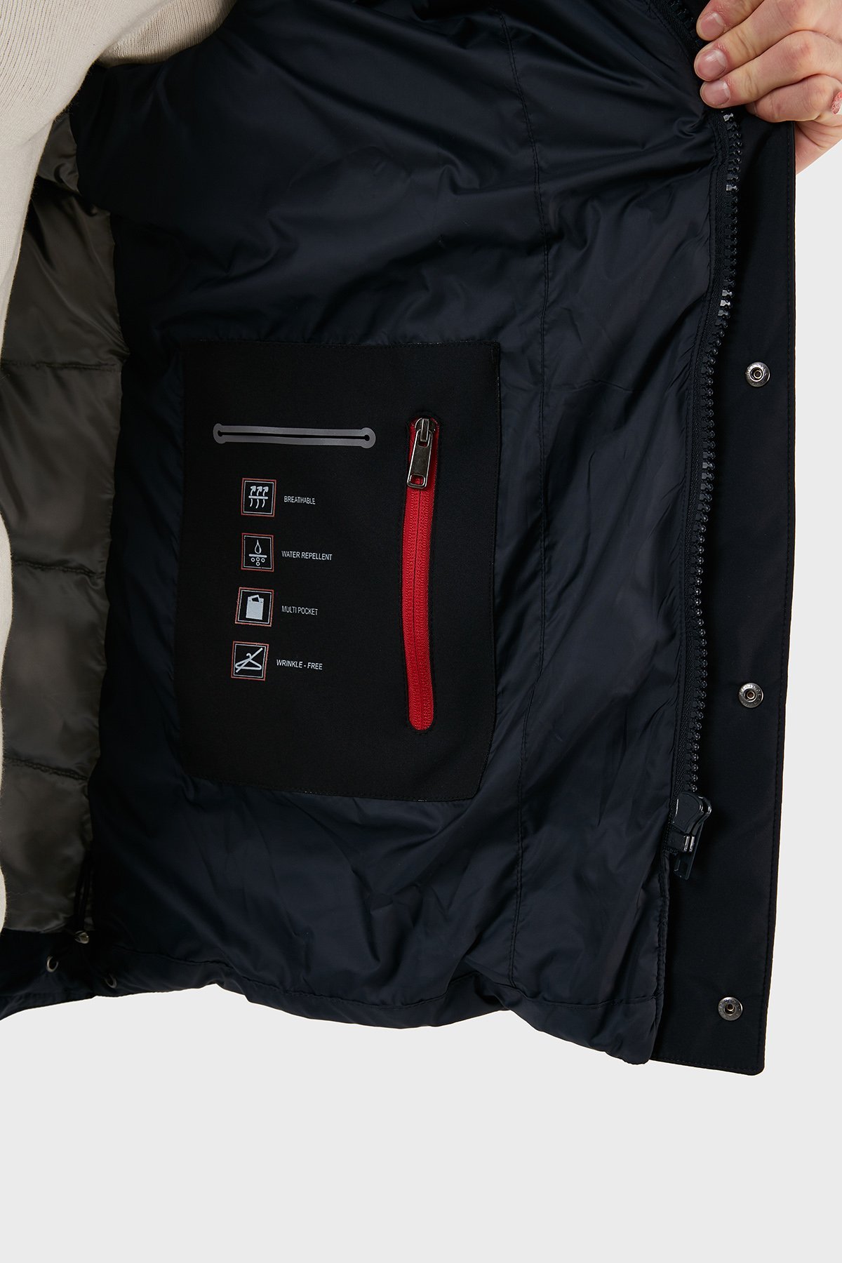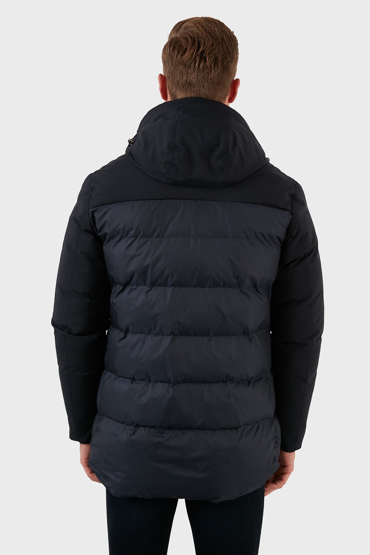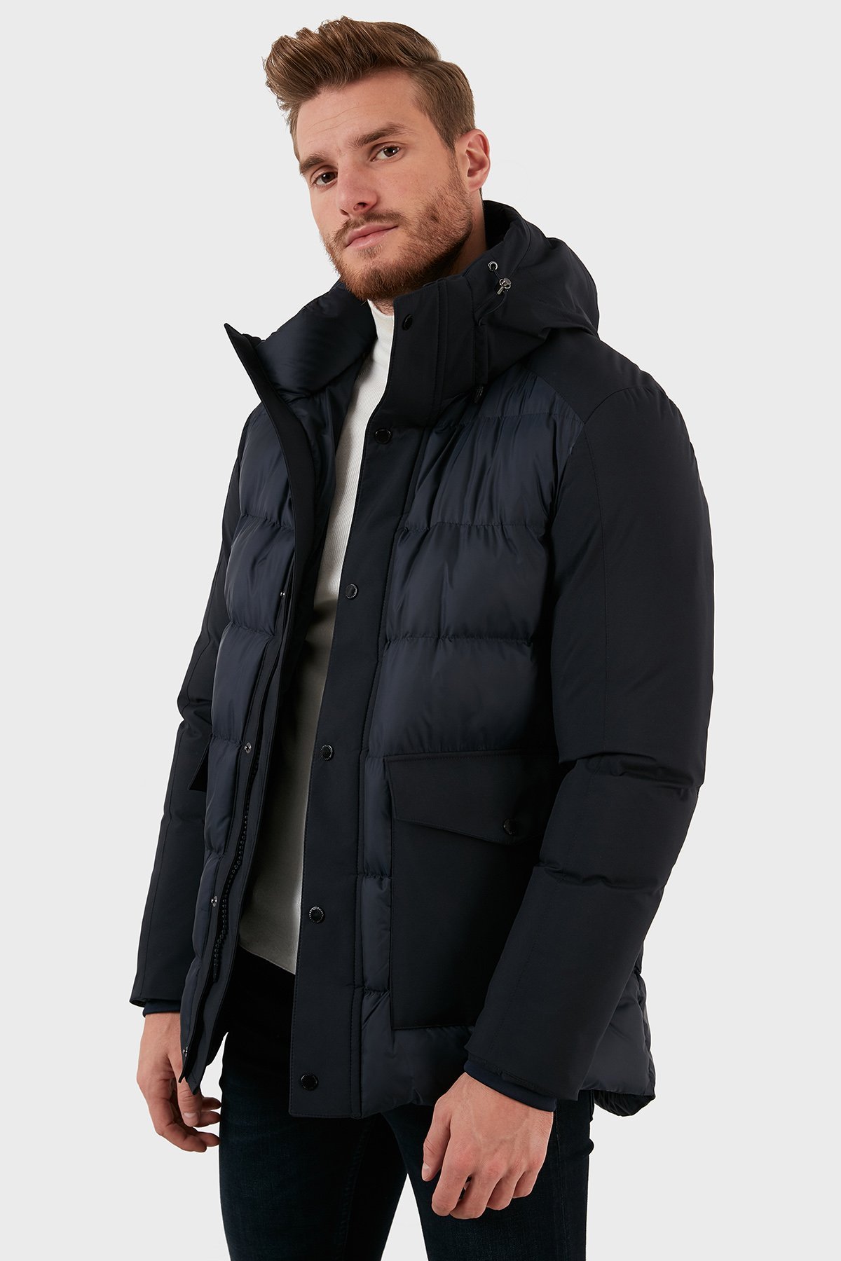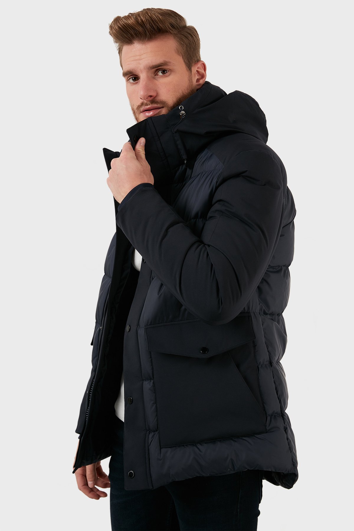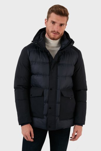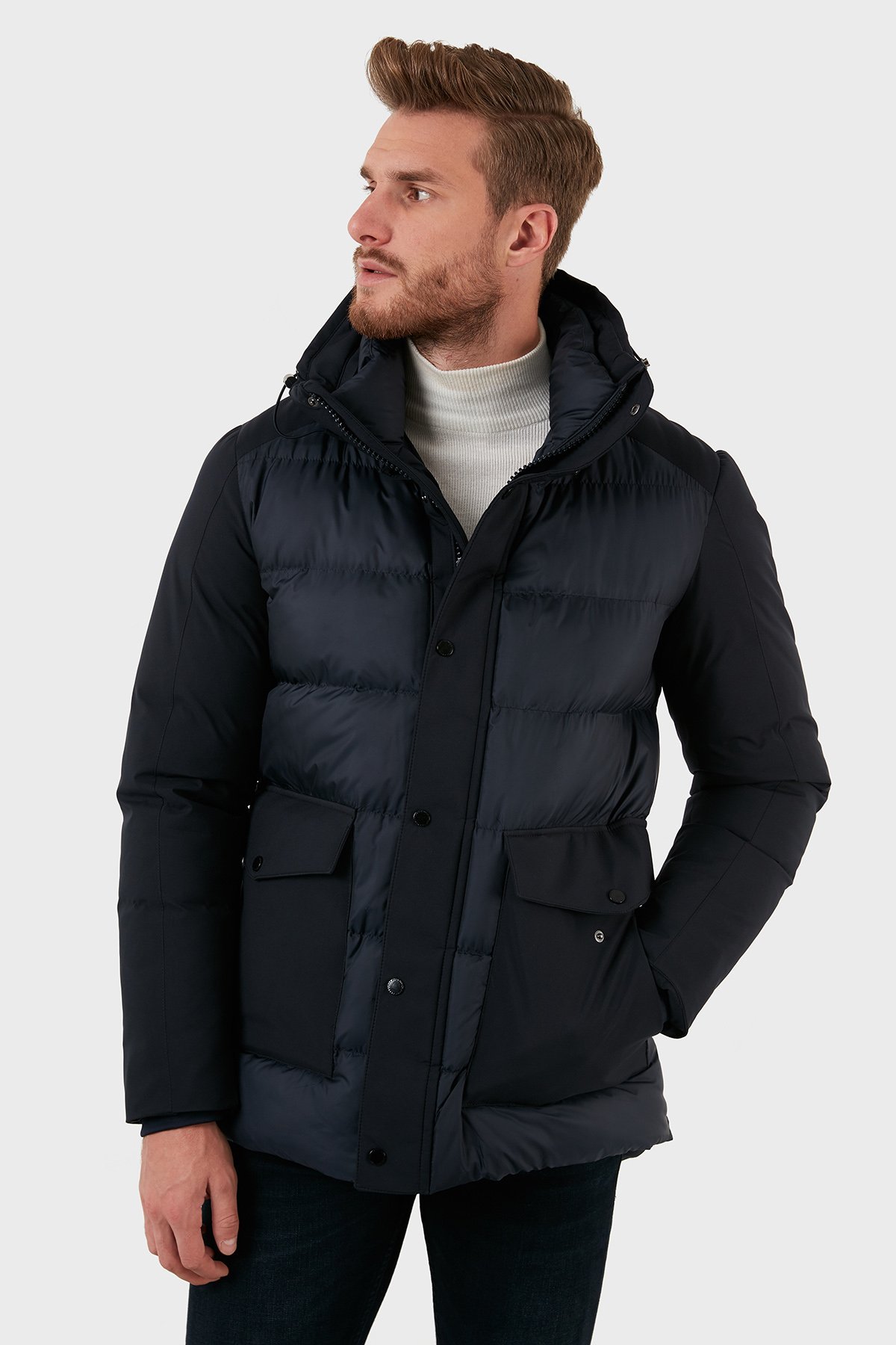 Su Geçirmez Fermuarlı Kapüşonlu Erkek Kaban EXK225510 LACİVERT
