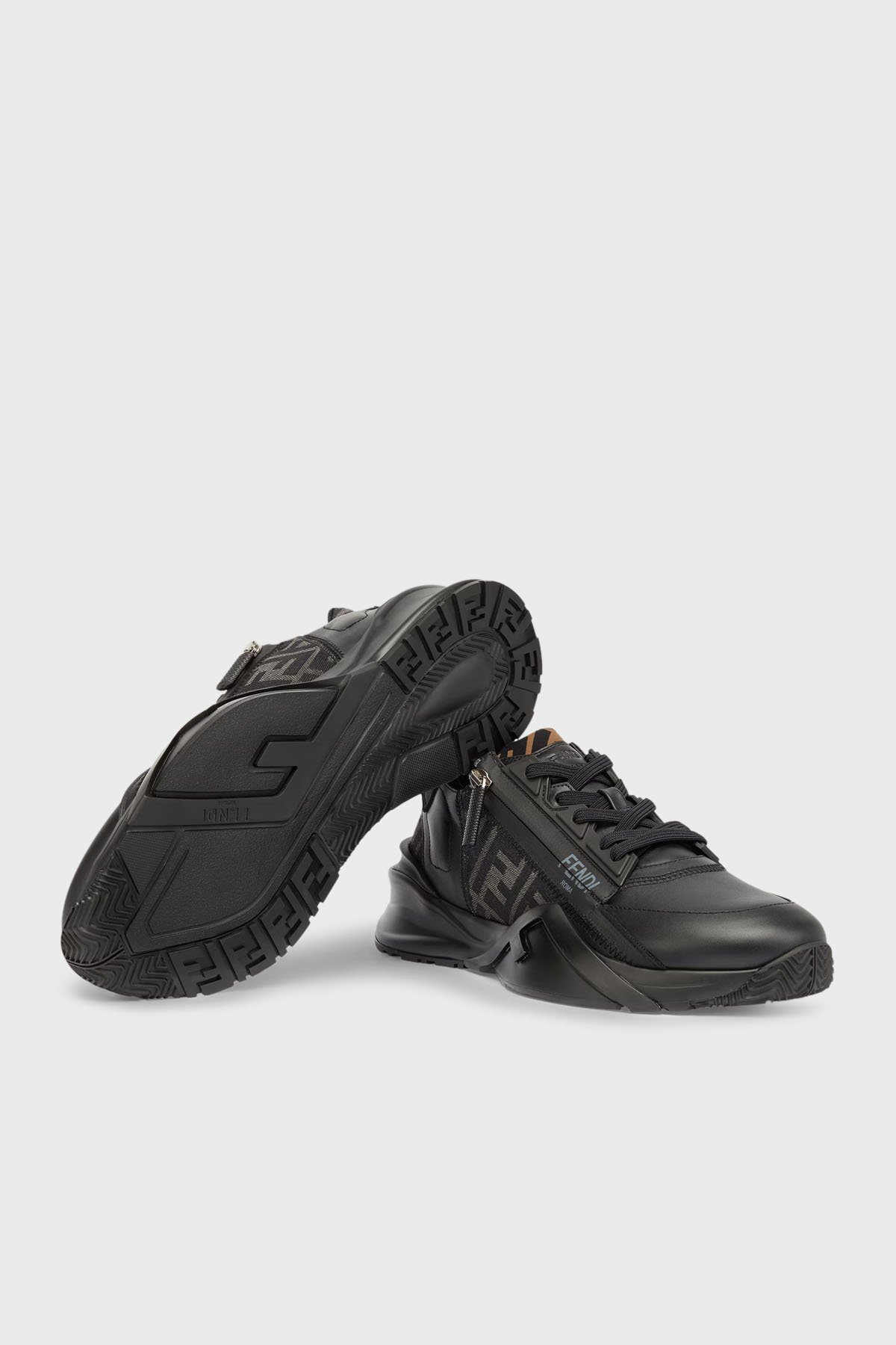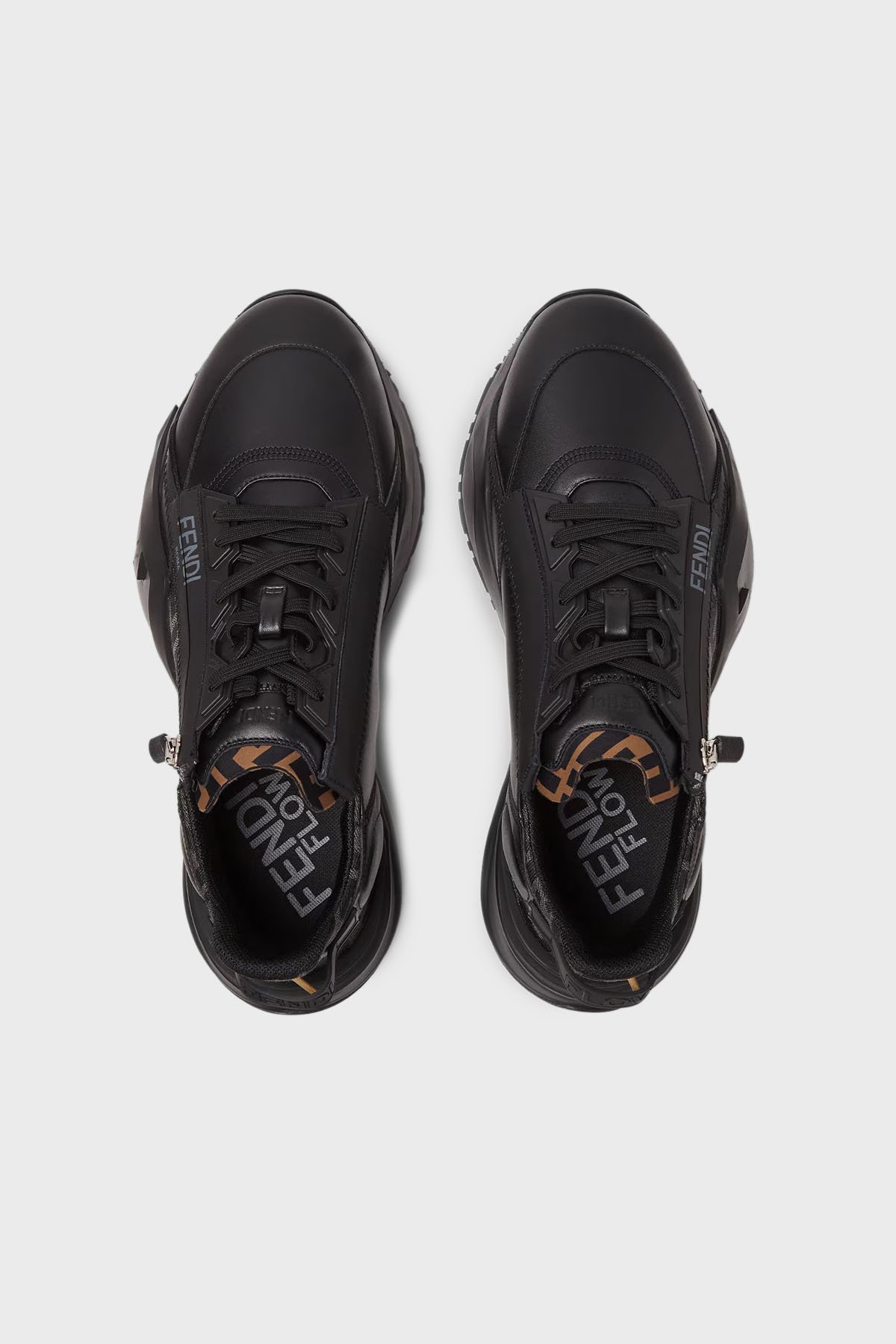 Hakiki Deri Logolu Bağcık ve Fermuarlı Sneaker Erkek Ayakkabı 7E1392 AJZH F1DV5 SİYAH