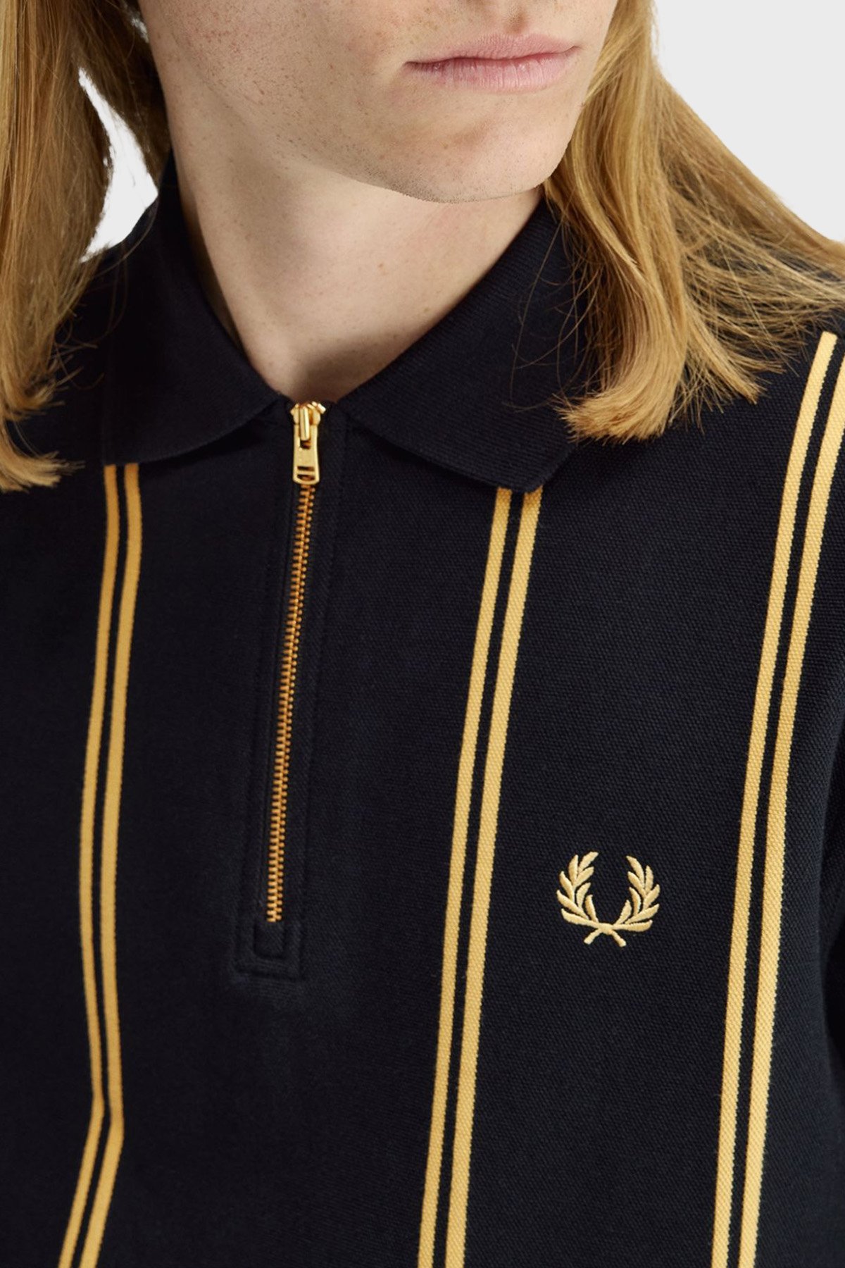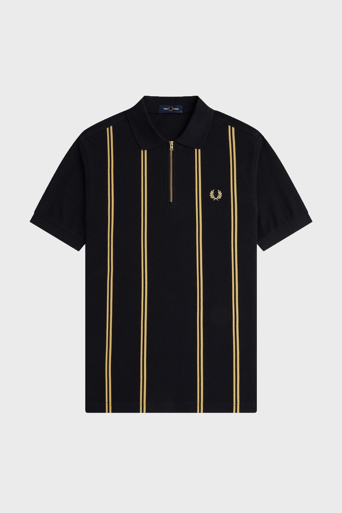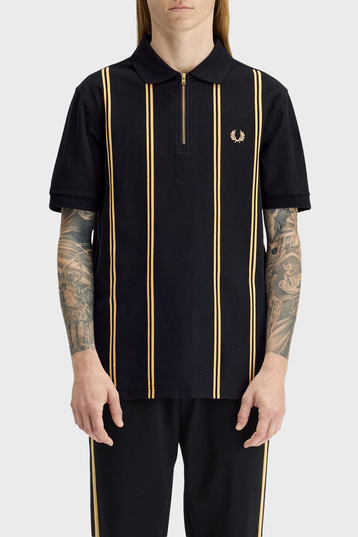 % 100 Pamuk Çizgili Regular Fit Yarım Fermuarlı Erkek Polo M2419 90A SİYAH