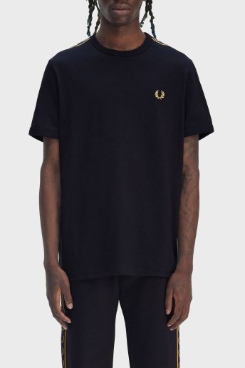 -Yakadan manşetlere kadar uzanan logo baskılı şerit