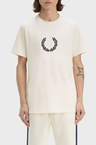 % 100 Pamuk Logo Nakışlı Regular Fit Bisiklet Yaka Erkek T Shirt M8587 560 EKRU